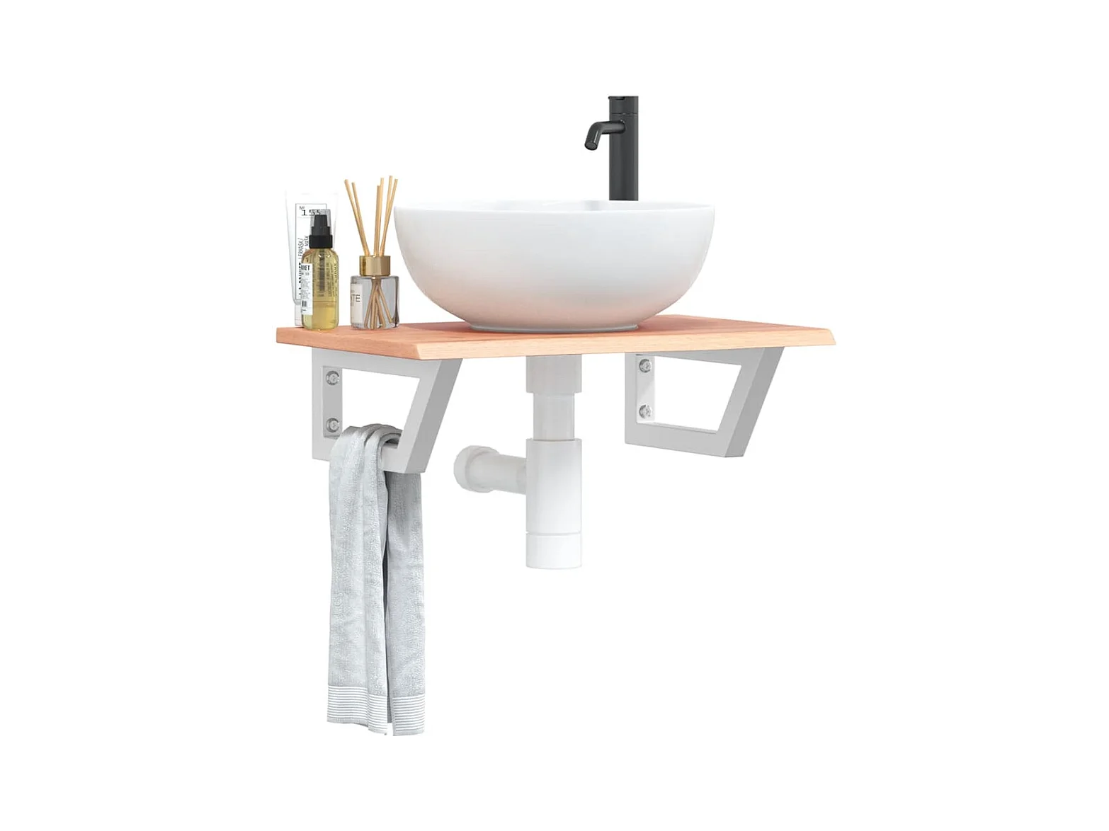 Prateleira de parede p/ lavatório aço/madeira carvalho maciça PT253475