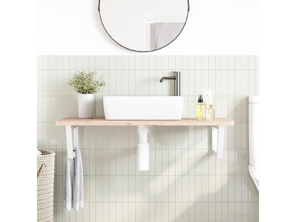 Prateleira de parede p/ lavatório aço/madeira de faia maciça