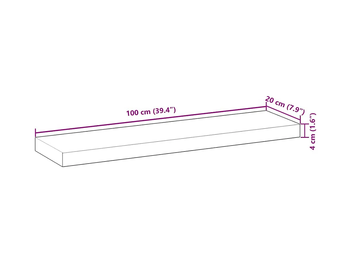 Prateleira flutuante 100x20x4 cm acácia maciça não tratada