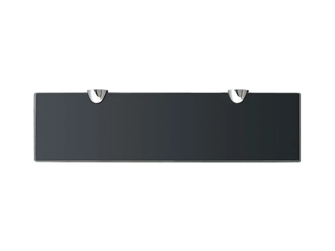 Prateleira canto, suportes cromados, vidro preto 35x35cm
