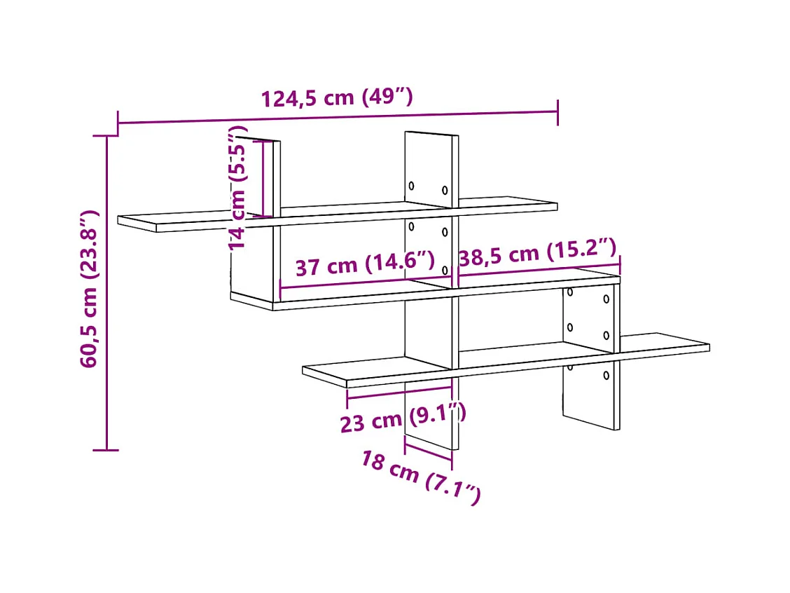 Estante parede 124,5x18x60,5cm deriv.madeira carvalho artisiano