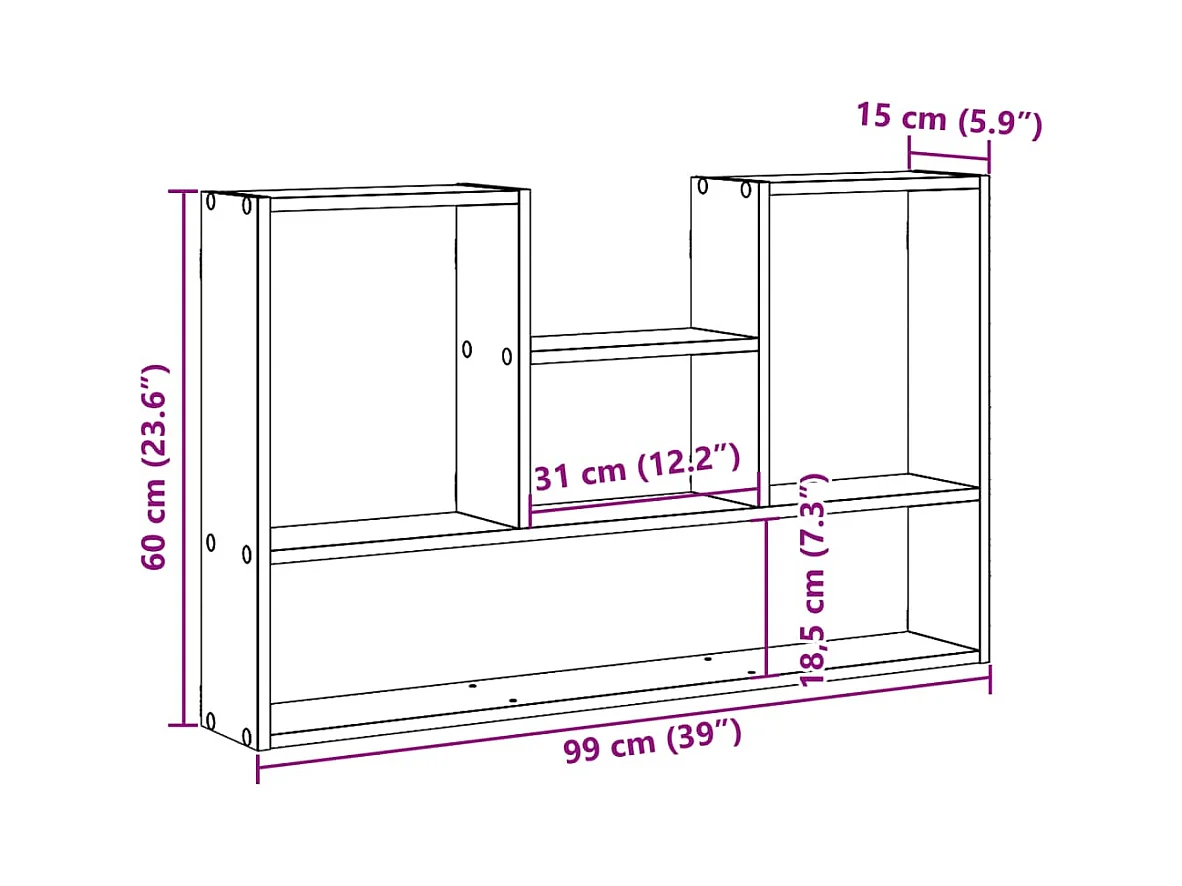 Prateleira parede 99x15x60 cm derivados madeira carvalho fumado