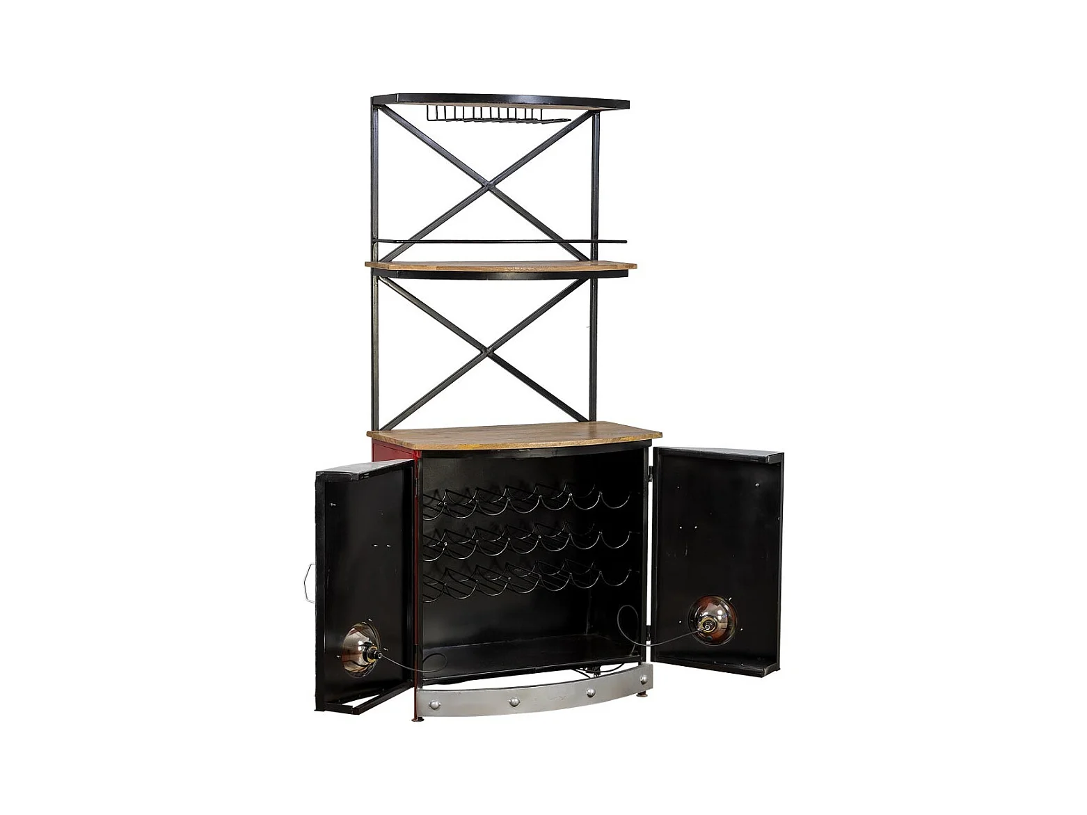 Barra porta-garrafas para van em madeira vermelha e metal 153x47x105