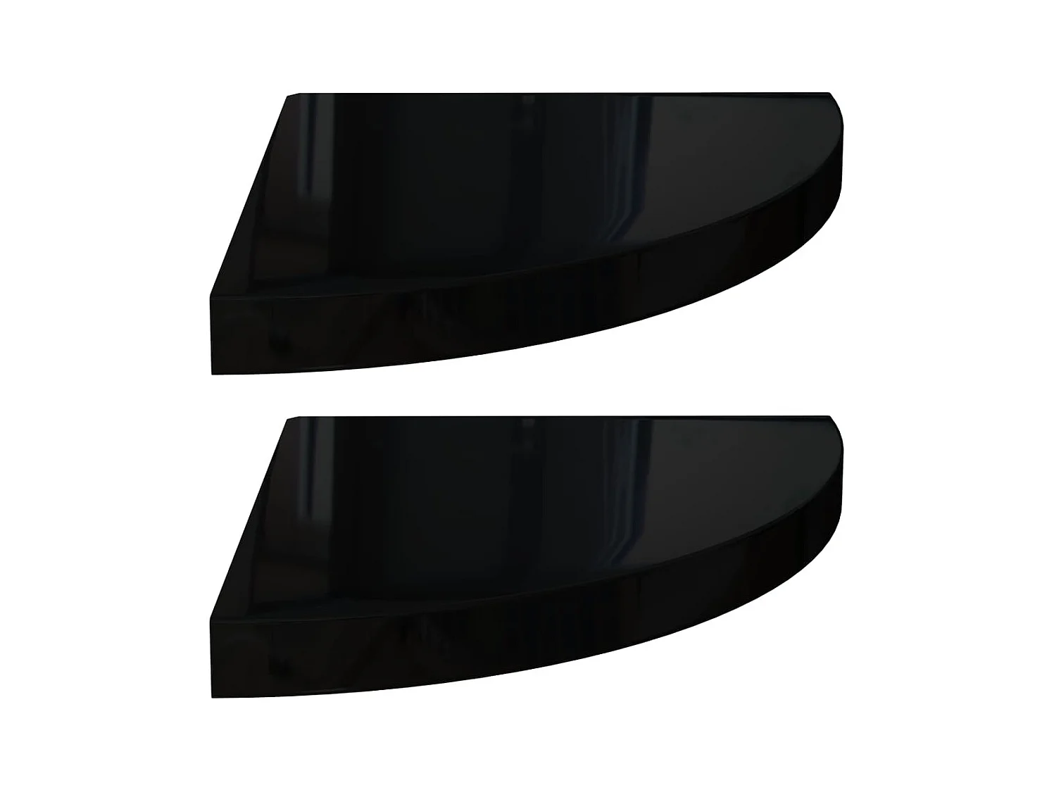 Prateleiras canto suspensas 2 pcs 25x25x3,8cm MDF preto brilh. PT472688