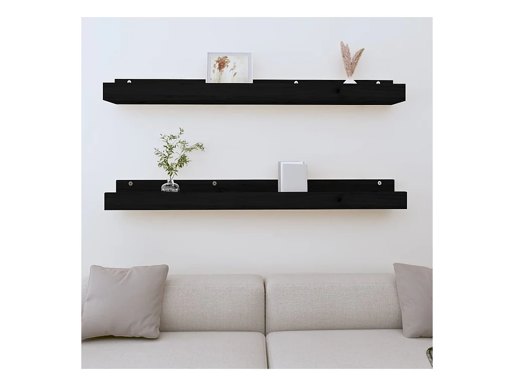 Prateleiras de parede 2 pcs 110x12x9 cm pinho maciço preto PT885916