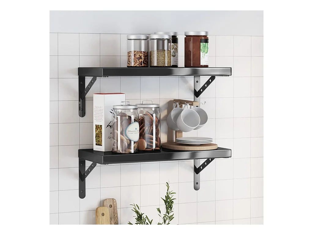 Prateleiras de parede 2 pcs 75x23,5 cm aço inoxidável prateado