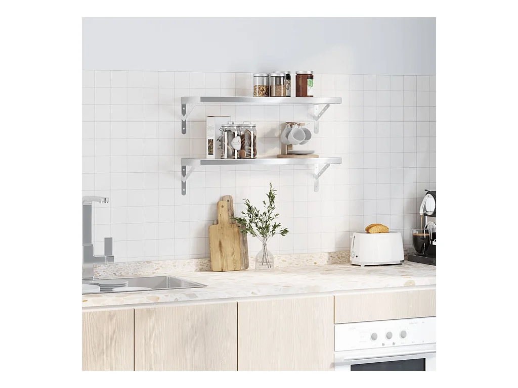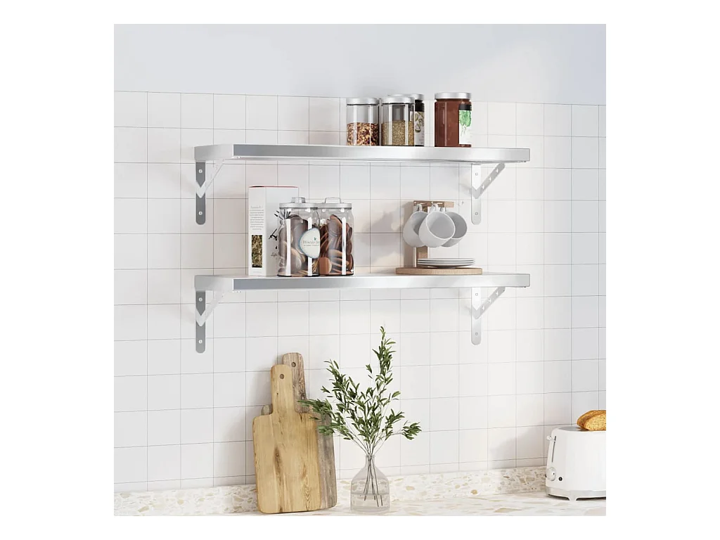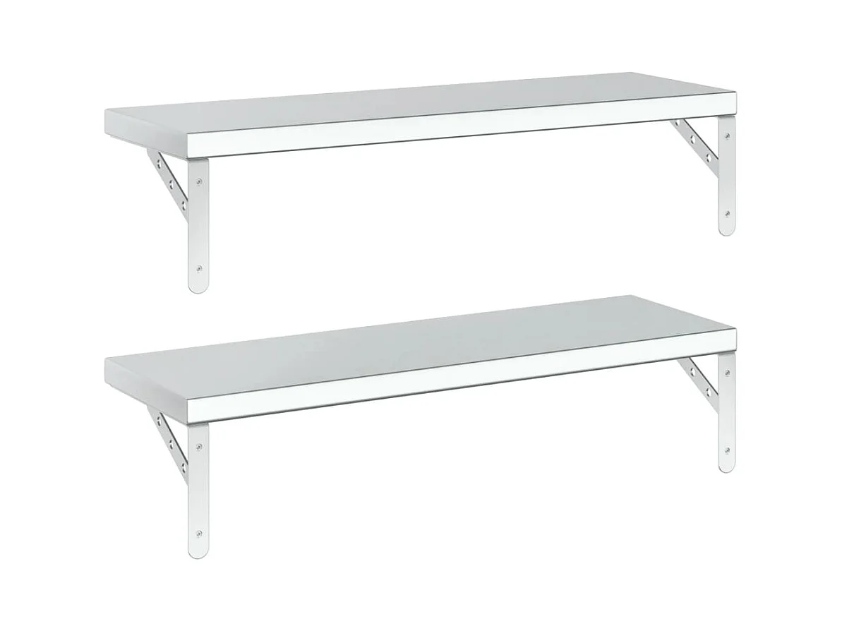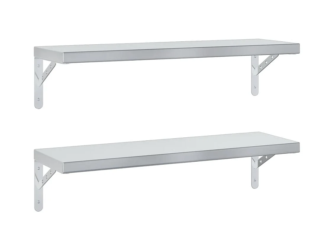 Prateleiras de parede 2pcs 100x23,5 cm aço inoxidável prateado