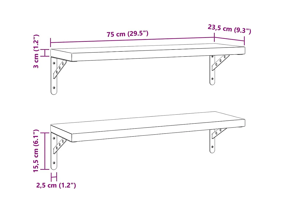 Prateleiras de parede 2 pcs 75x23,5x3cm aço inoxidável prateado