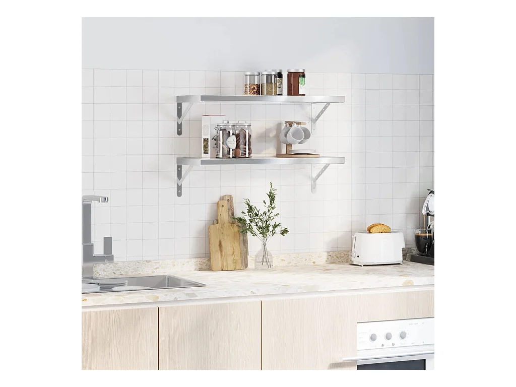 Prateleiras de parede 2 pcs 75x23,5 cm aço inoxidável prateado