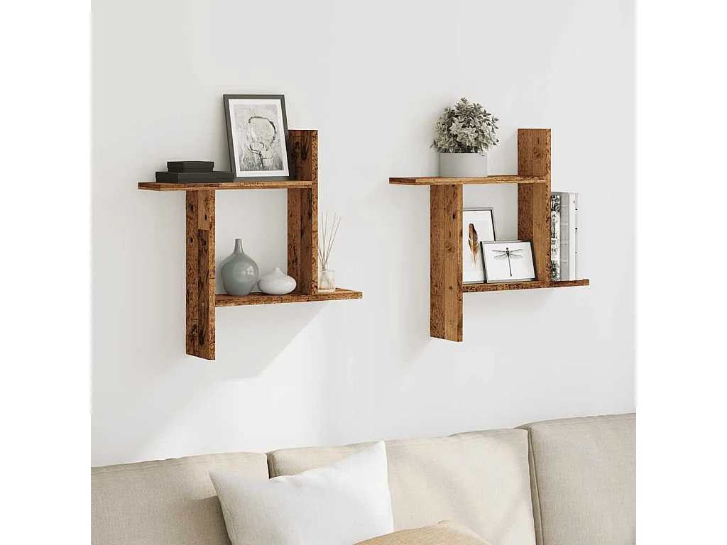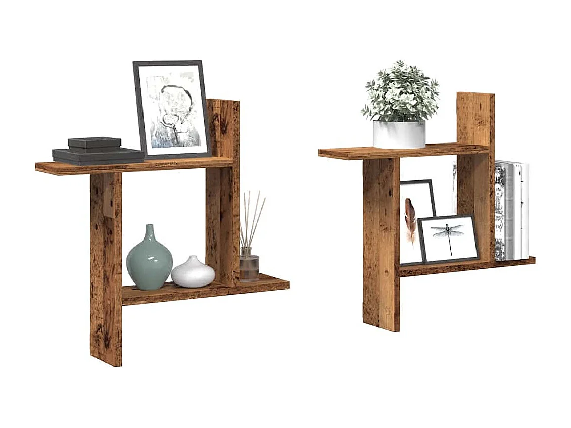 Prateleiras de parede 2 pcs derivados de madeira madeira velha