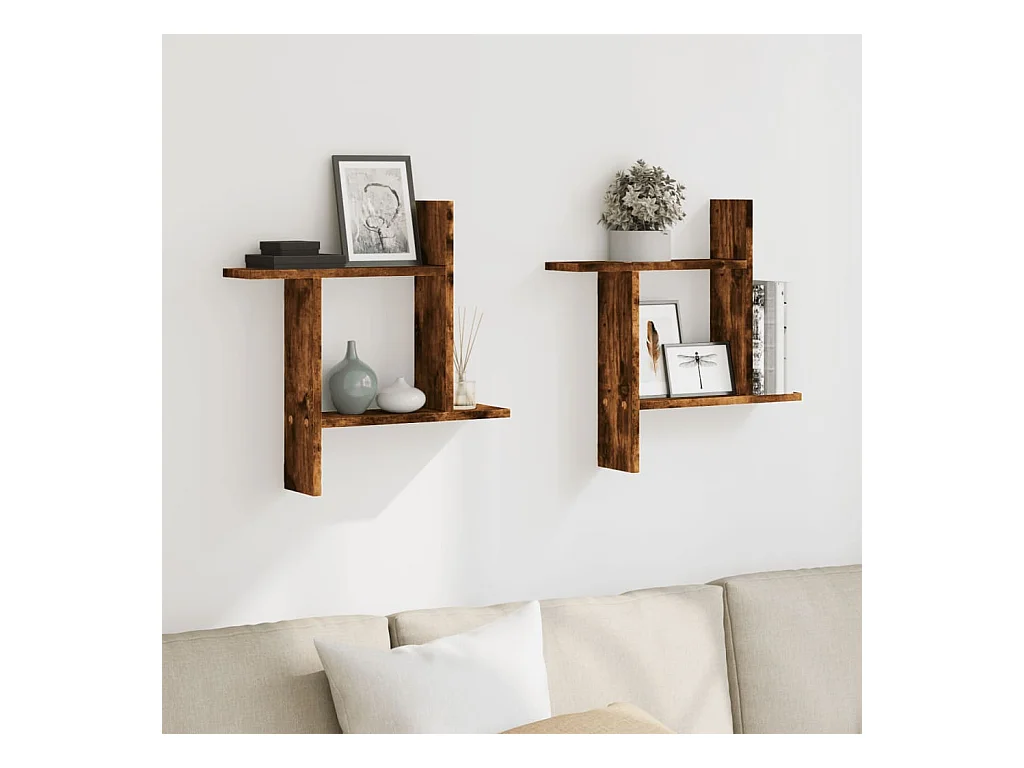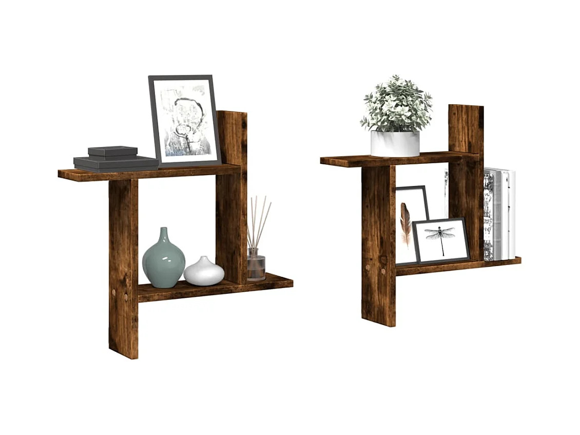Prateleira parede 2pcs derivados de madeira carvalho fumado