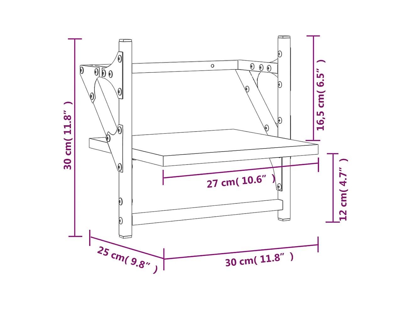 Prateleiras de parede c/ barras 2 pcs 30x25x30 cm cinza sonoma