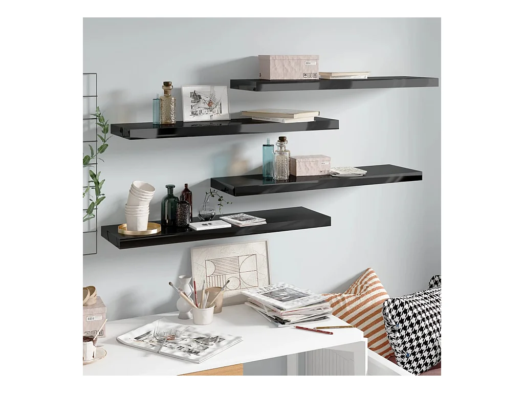Prateleiras parede suspensas 4 pcs 90x23,5x3,8cm MDF preto PT837964