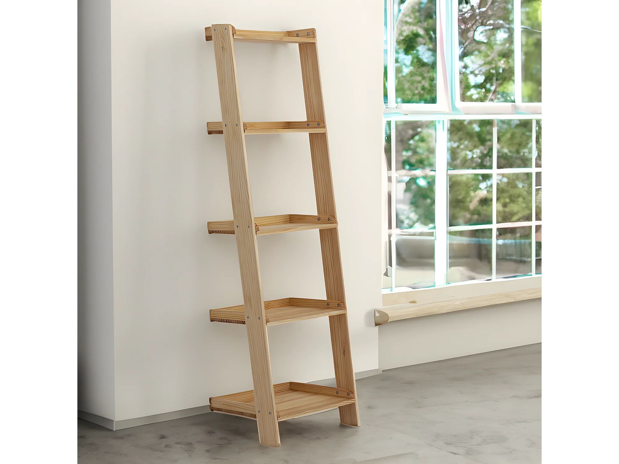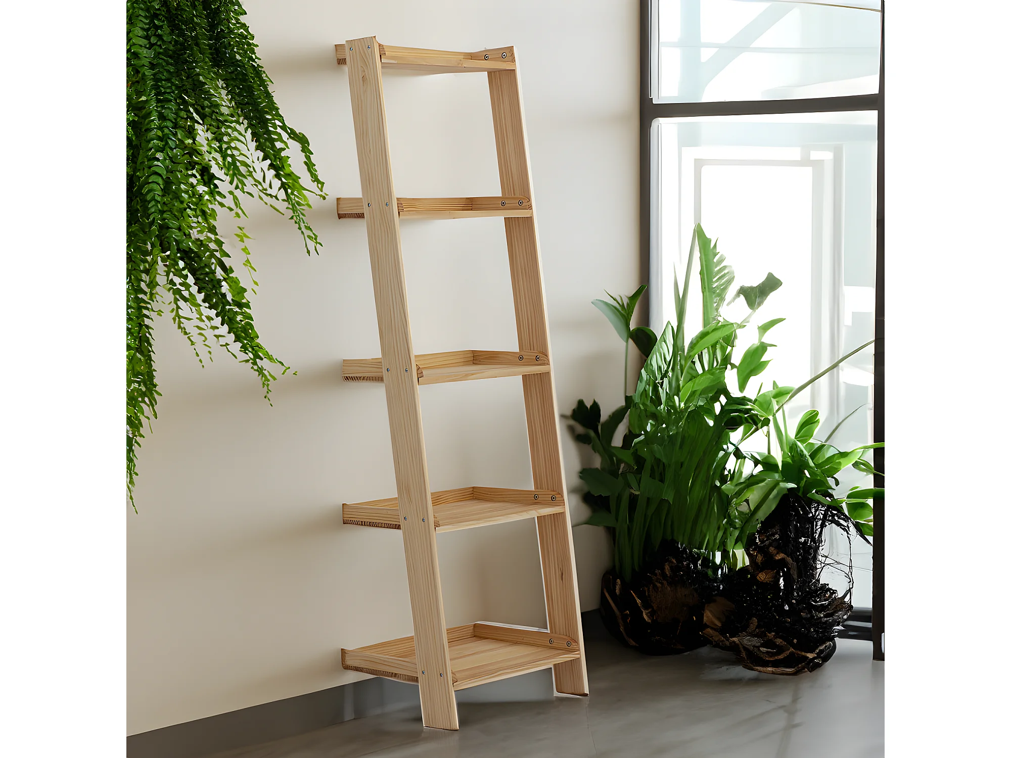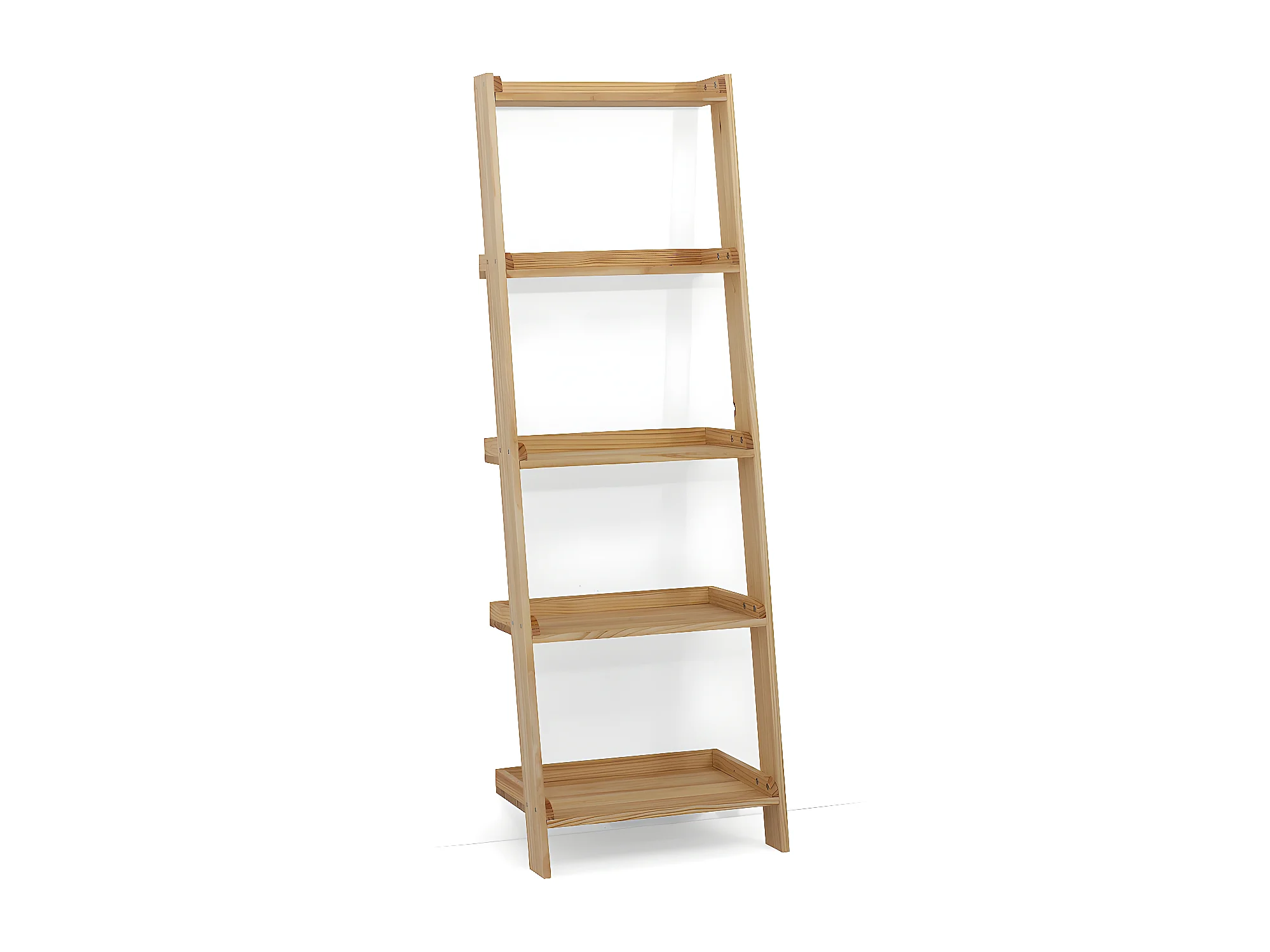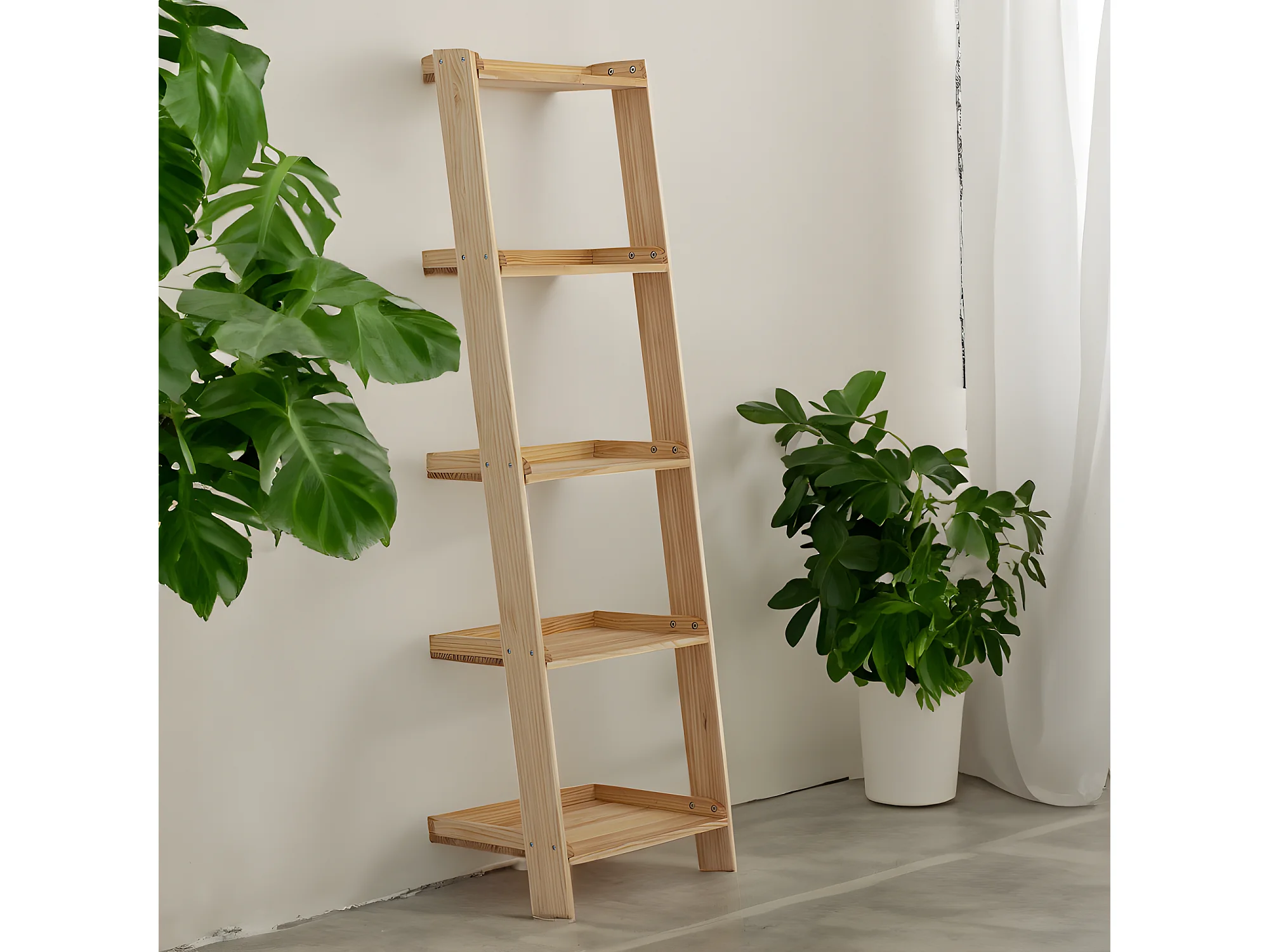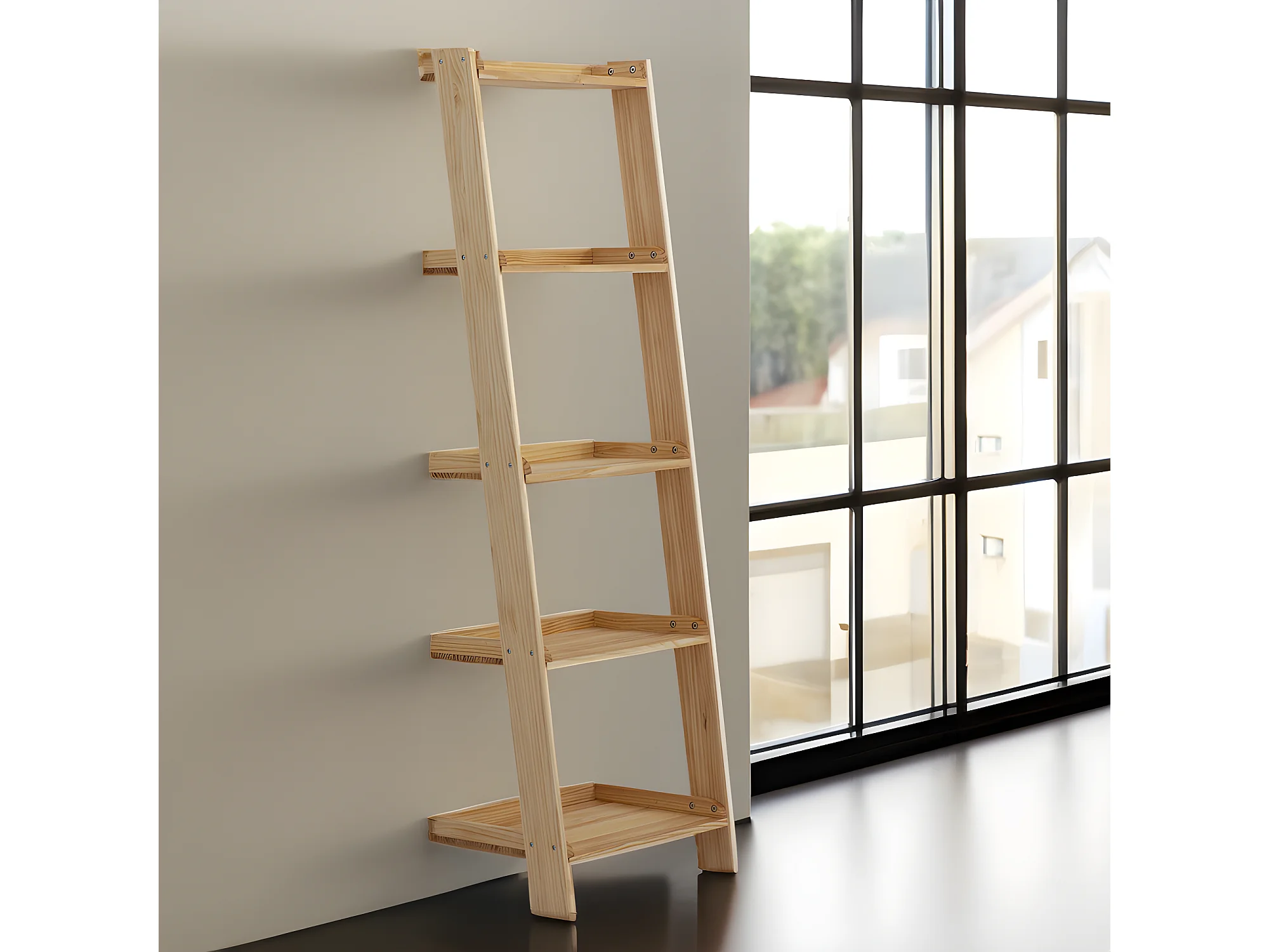 Prateleiras decorativas em escada com tabuleiros. 60x40x180cm. Madeira maciça de pinho com acabamento natural. Móveis de caixa.