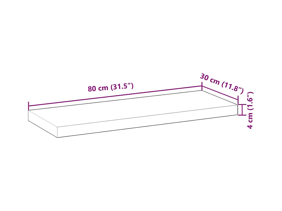 Prateleira flutuante 80x30x4 cm acácia maciça acabamento a óleo
