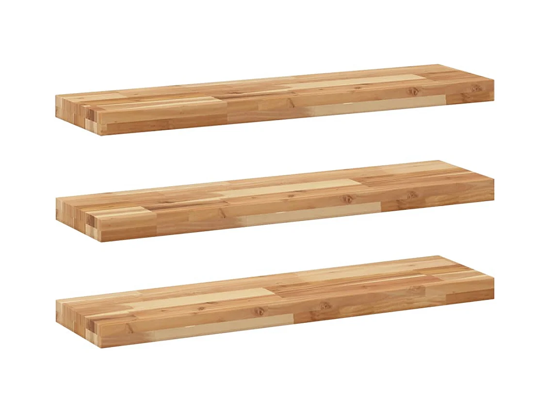 Prateleiras flutuantes 3 pcs acácia maciça c/ acabamento a óleo