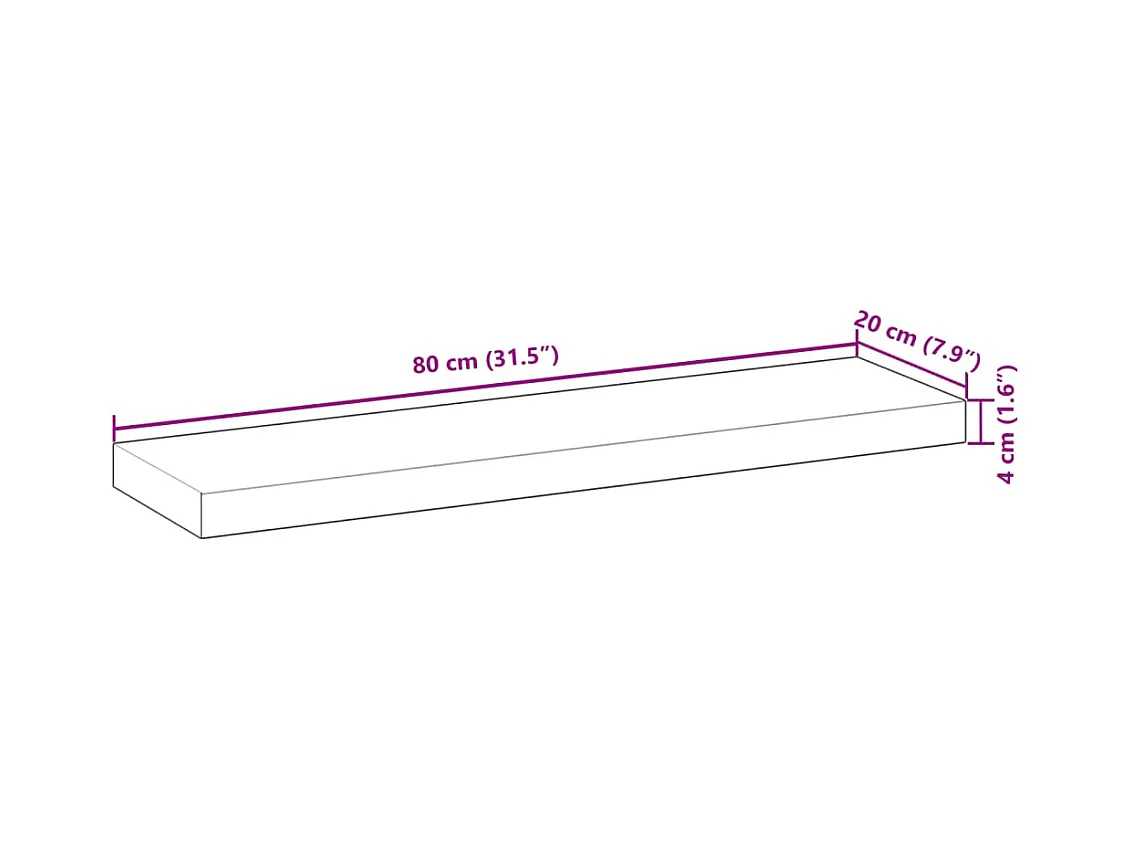 Prateleira flutuante 80x40x4 cm acácia maciça acabamento a óleo