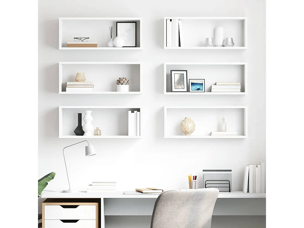 Prateleiras parede forma de cubo 6 pcs derivados madeira branco