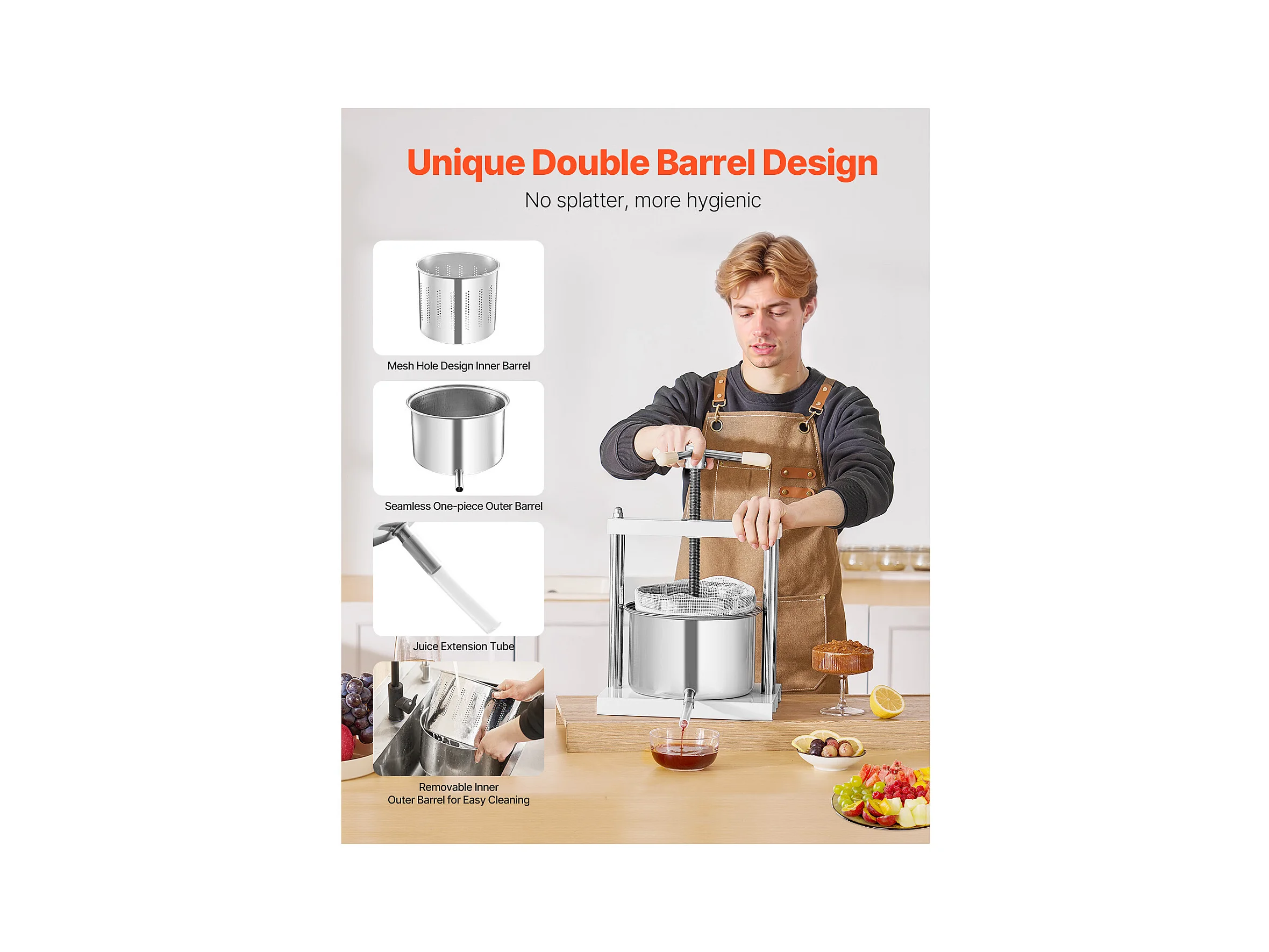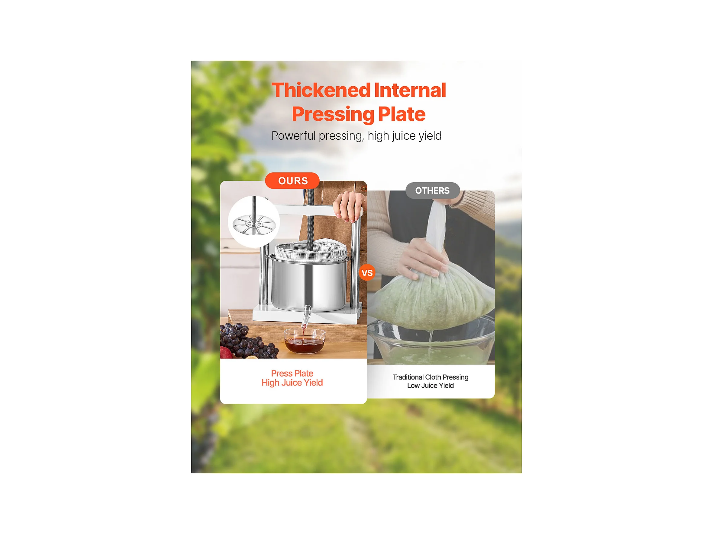 Prensa Manual para Vinificação Doméstica SucceBuy, 5 L, Aço Inoxidável, Extrator de Sumo para Sidra, Maçã, Uva, Mel