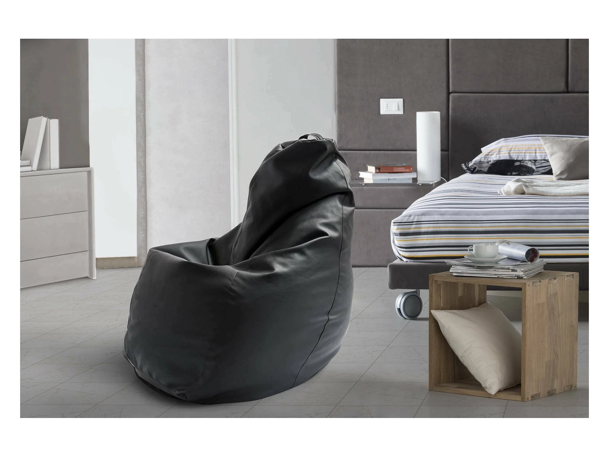 Pufe Dabbew, Pufe saco de feijão, 100% Fabricado na Itália, Pufe em couro ecológico, 70x70h110 cm, Preto