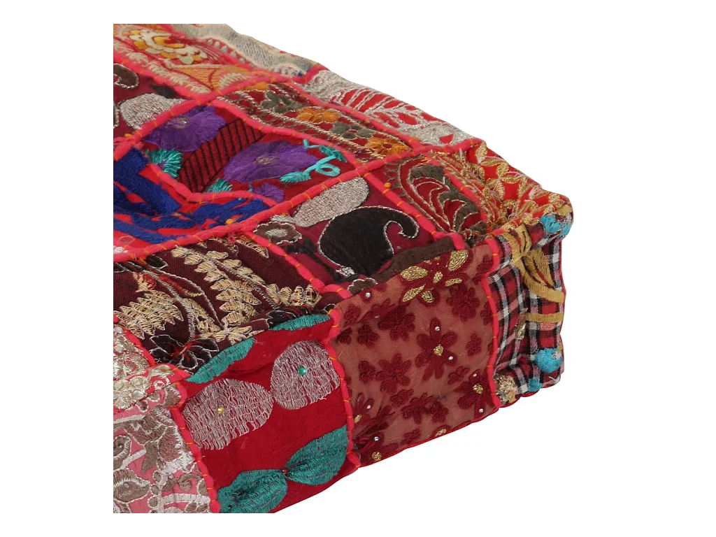 Pufe de retalhos quadrado algodão artesanal 50x50x12cm vermelho PT204110