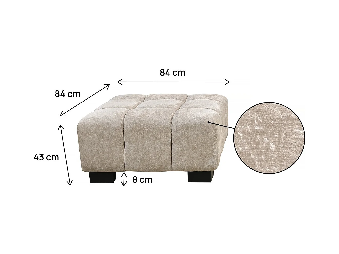 Pufe de veludo bege "Foch" - 84 x 84 x 43 cm - Confortável e elegante