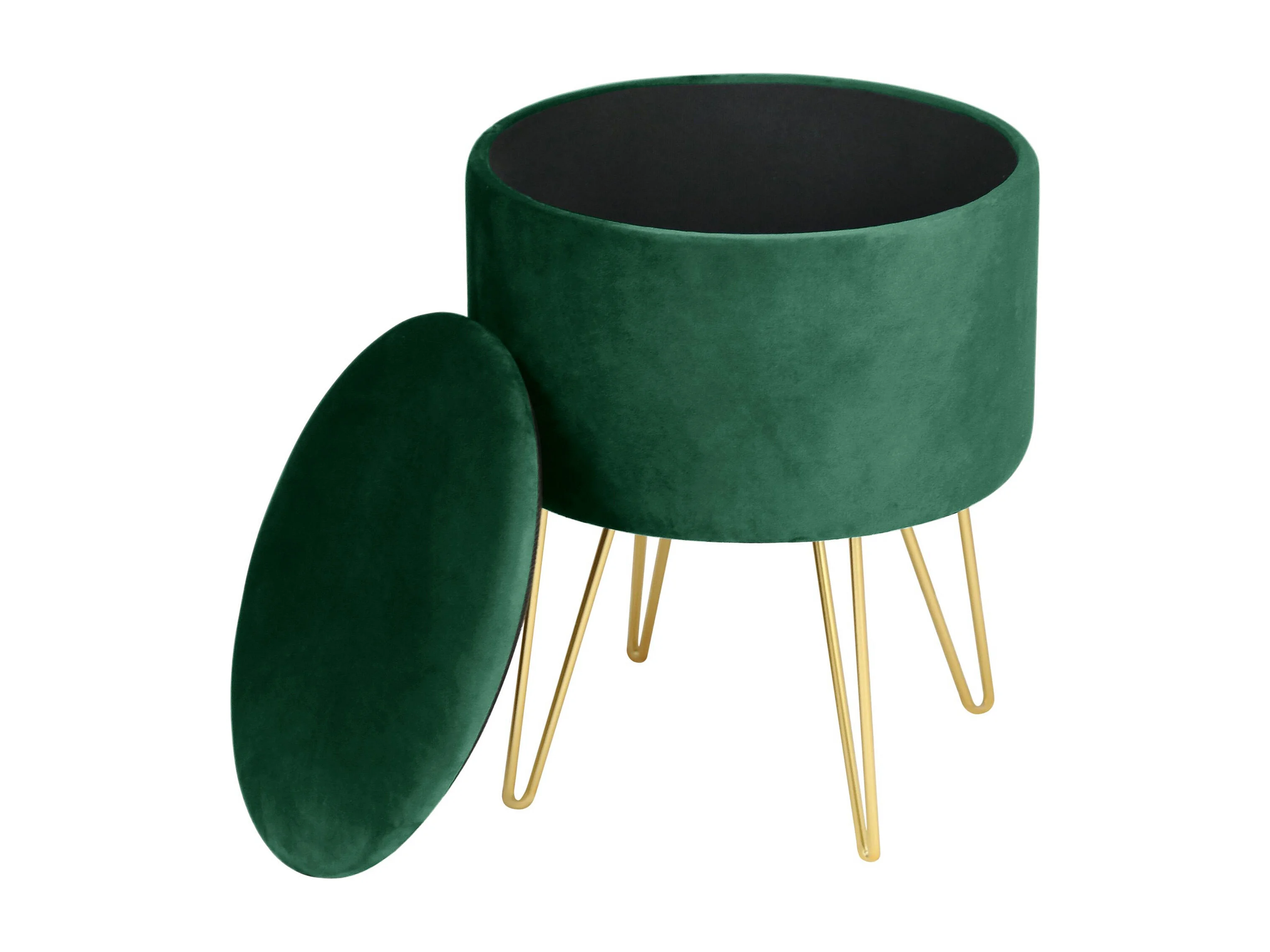 Pufe Redonda Estofada Lili Verde Garrafa com Armazenamento Abertura 35x45 cm - Base Dourada em Aço