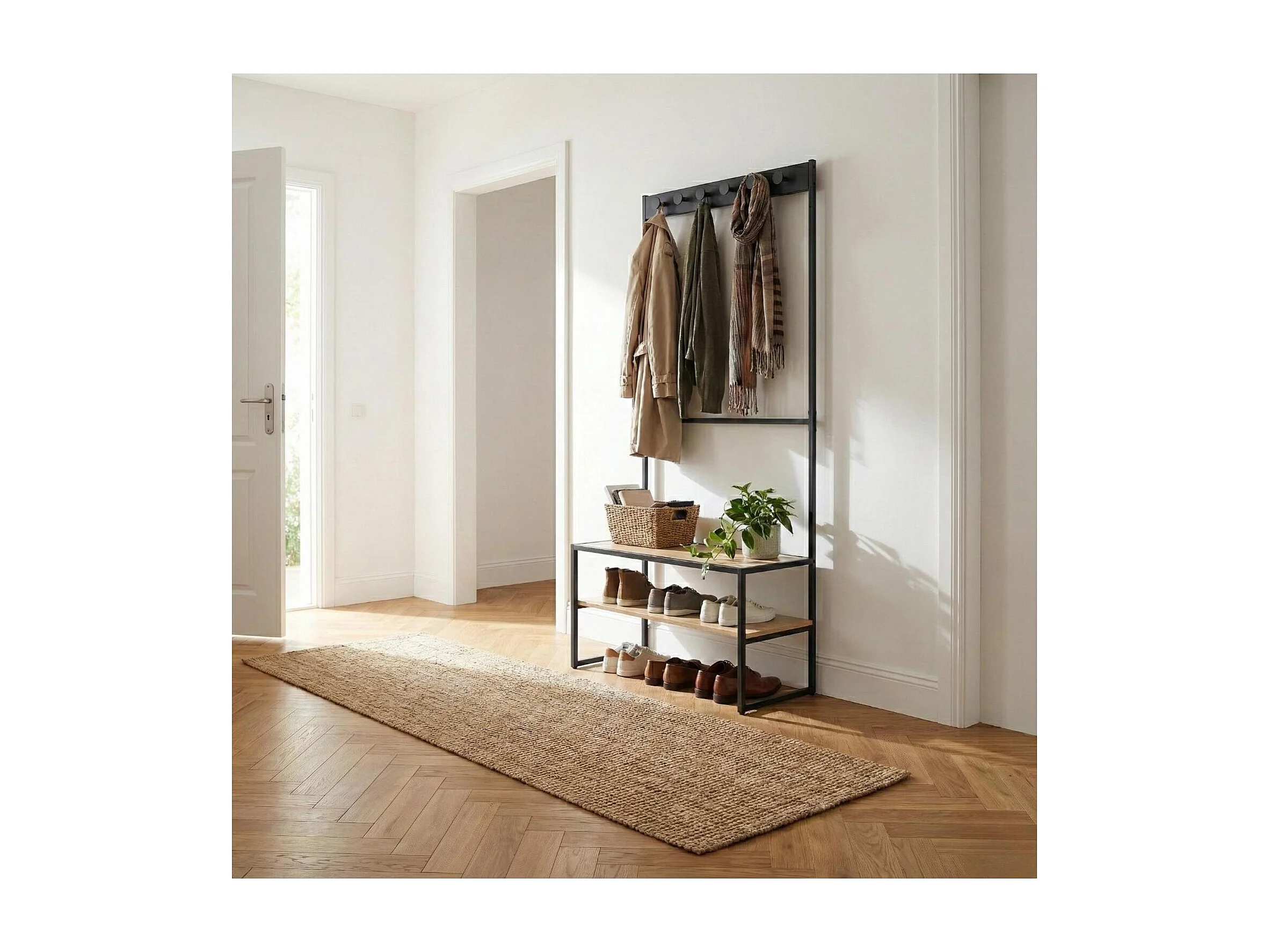Móveis de entrada Dradunovi, Cabide de entrada, Composição do átrio, Consola de arrumação multifuncional, 150x35 h200 cm, Nogueira e Antracite
