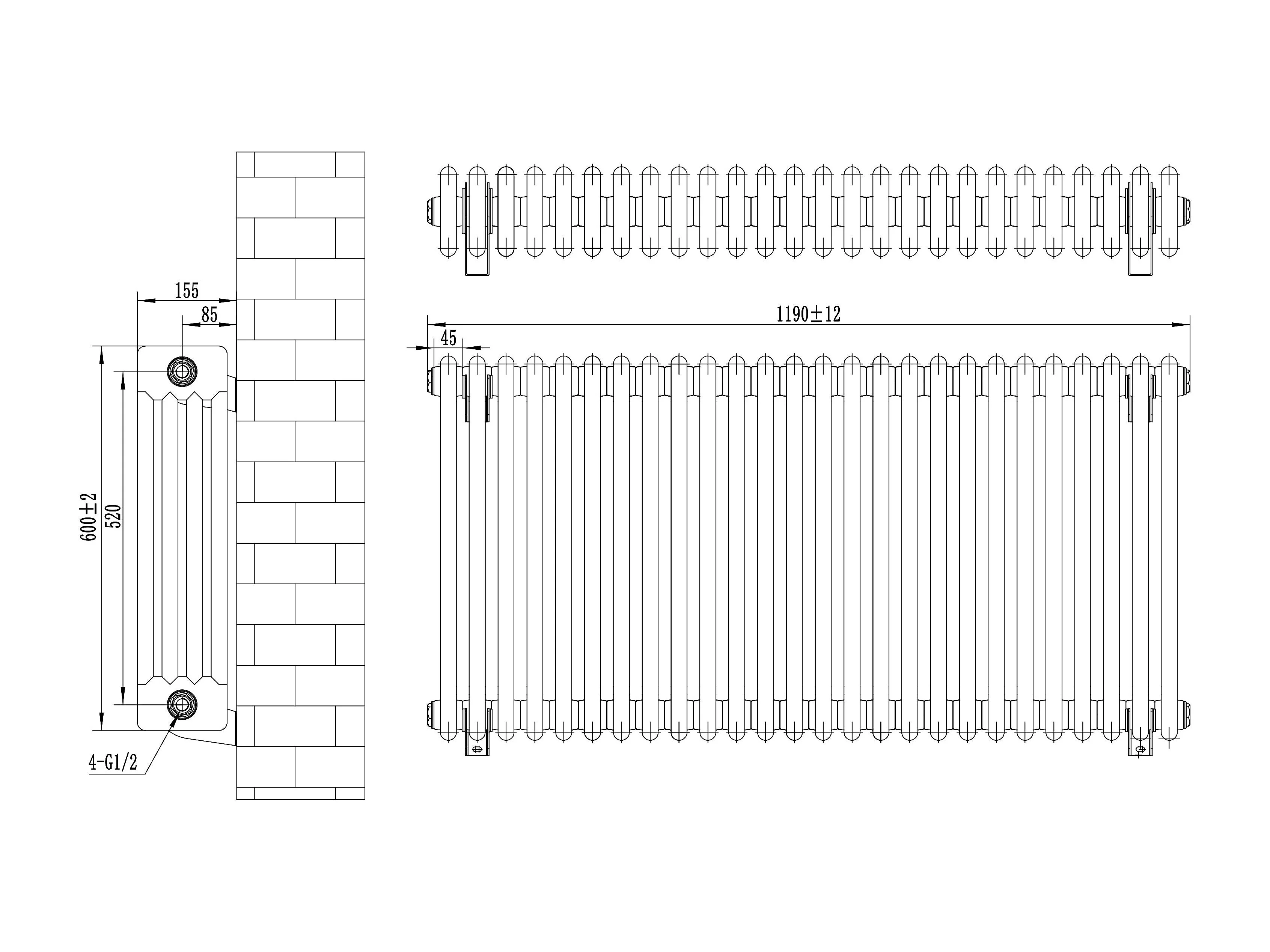 Radiador Horizontal 4 Colunas 600x1190 mm - Cinza Antracite, Aço Carbono 1.5 mm, 1512 W, Alta Eficiência, Fácil Instalação, Durável e Design Clássico