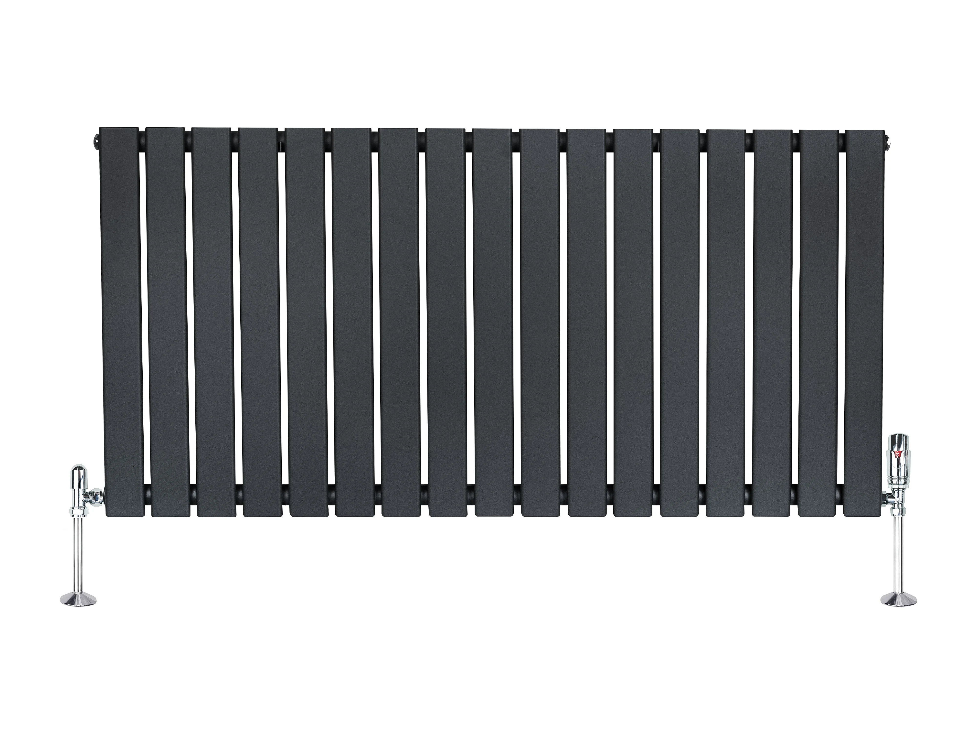 Radiador Plano Coluna Única 600x1190 mm - Cinza Antracite, Aço Carbono 1,5 mm, 1080W, Alta Eficiência, Válvulas Termostáticas Incluídas, Fácil Instalação e Durável