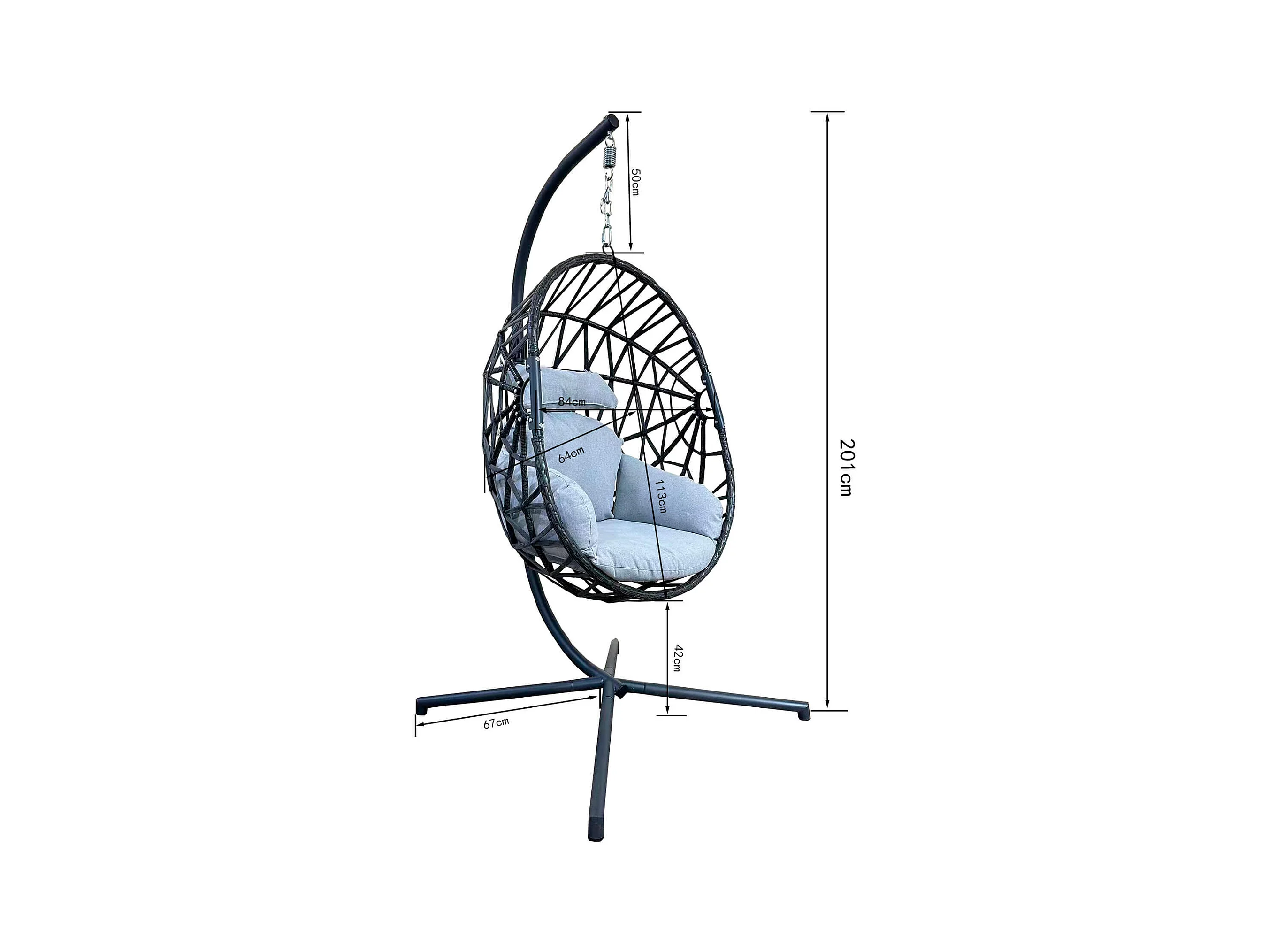 Rebecca Mobili Poltrona suspensa de baloiço Polyrattan cinzento para o jardim da casa