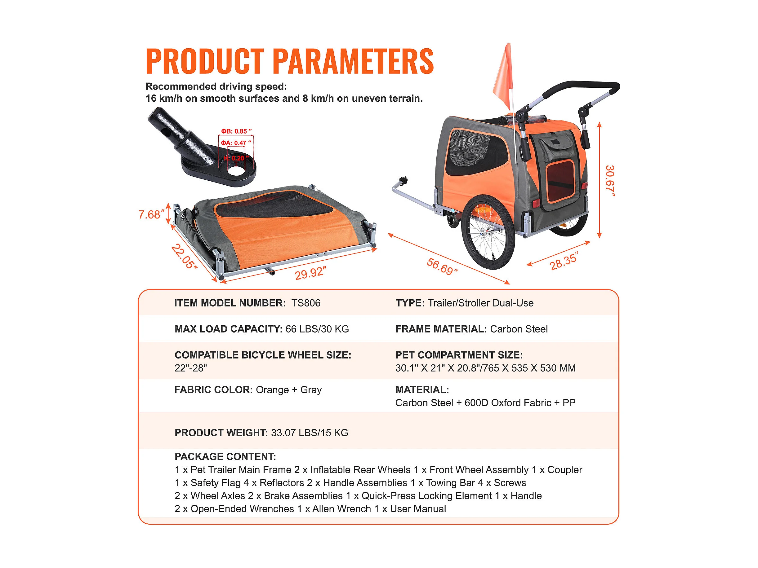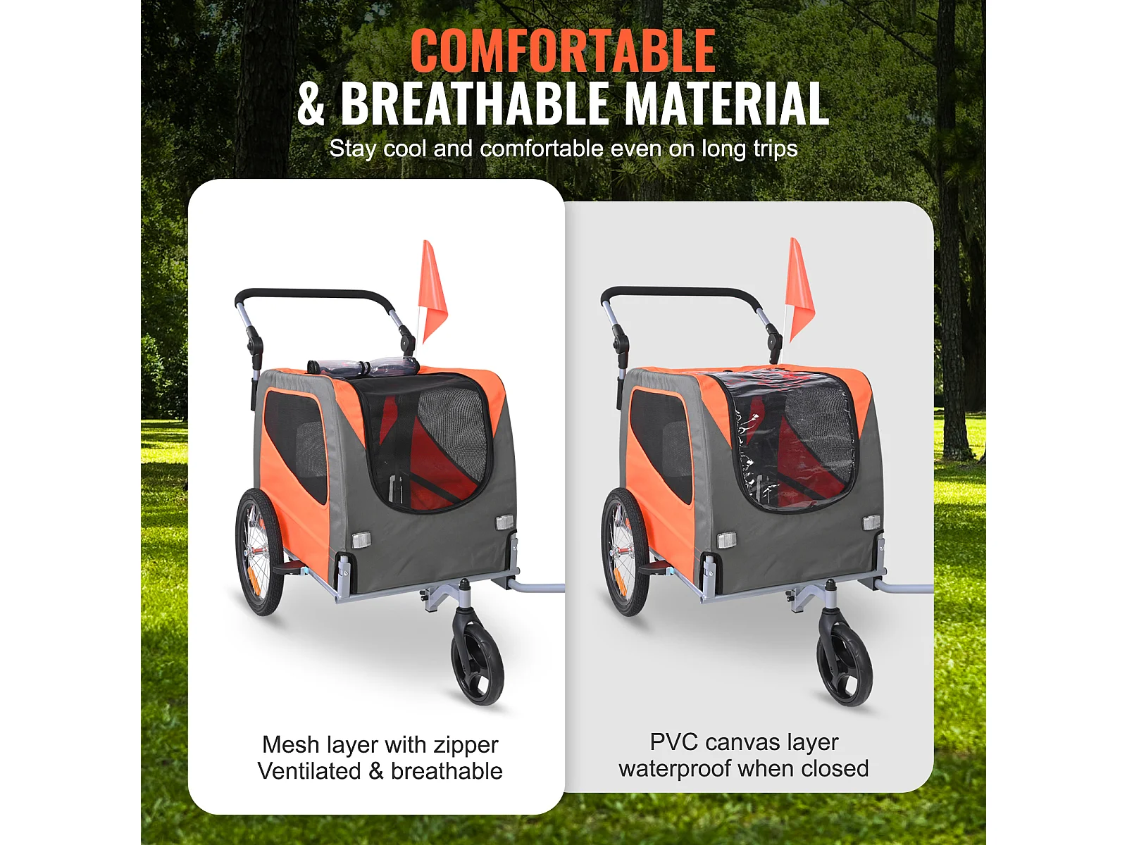 Reboque de Bicicleta 2 em 1, SucceBuy Reboque e Carrinho para Animais de Estimação, Capacidade de Transporte de Cães e Gatos de 30 kg, Resistente à Água