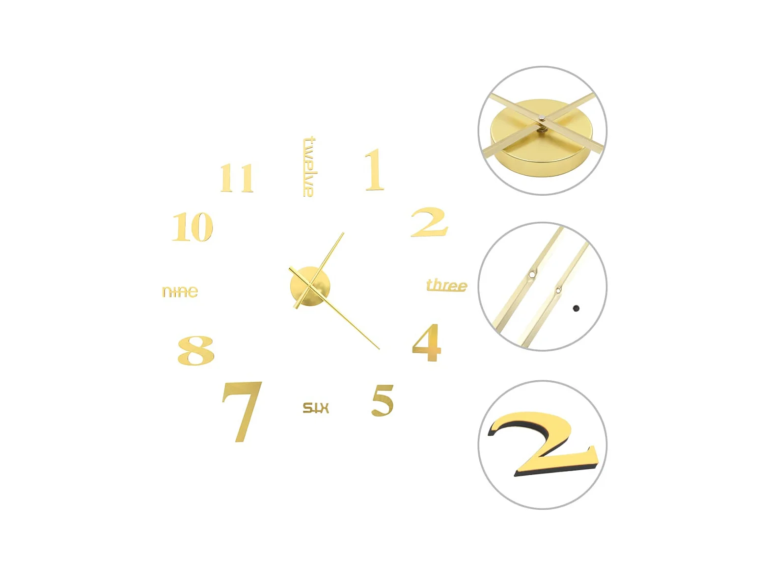 Relógio de parede 3D Design moderno dourado 100 cm XXL