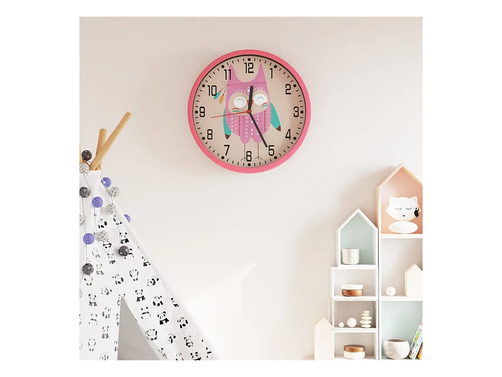 Relógio de parede rosa Ø25,5 cm em poliestireno e vidro