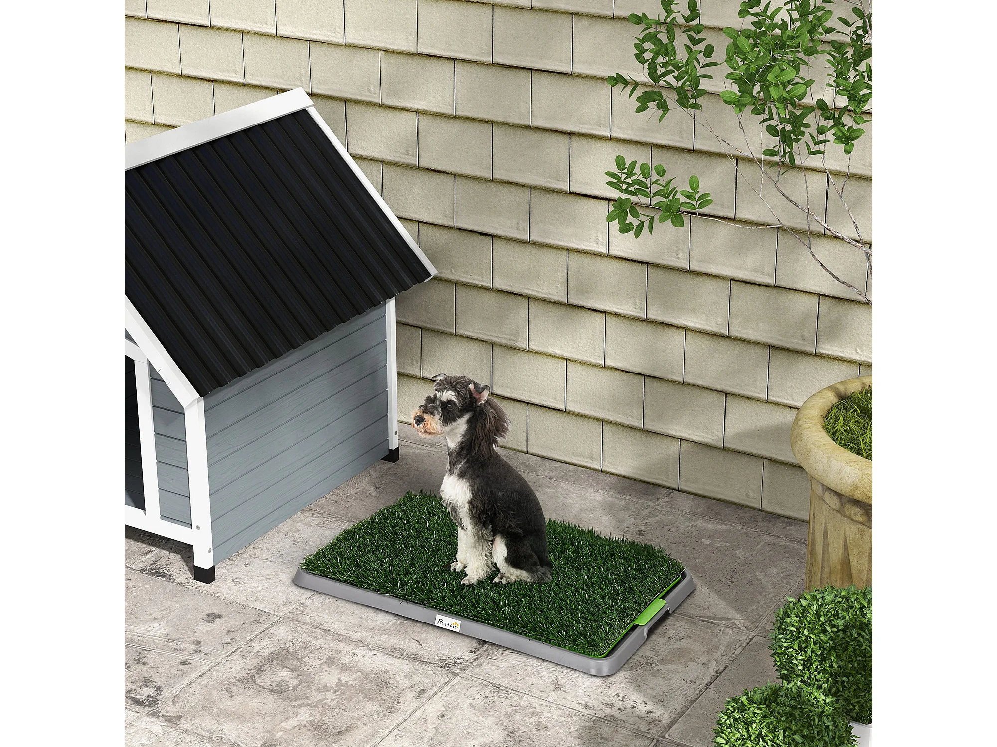 Resguardo de Treino para Cães PawHut com Relva Artificial e Bandeja, Ideal para Filhotes e Cães de Até 50 cm - Verde 67x41x3,5 cm