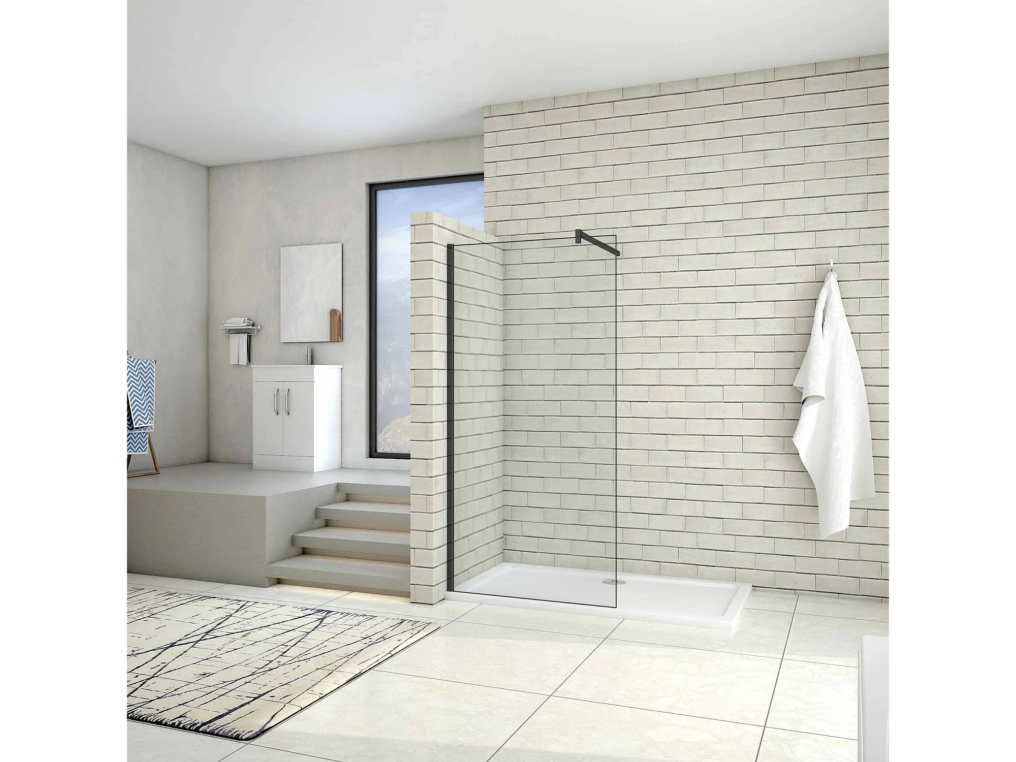 Resguardo frontal de duche sem moldura exterior,vidro temperado anti-calcário de 5mm com barra de 140cm,perfil Preto Mate,(680-700)x1900mm-AICA