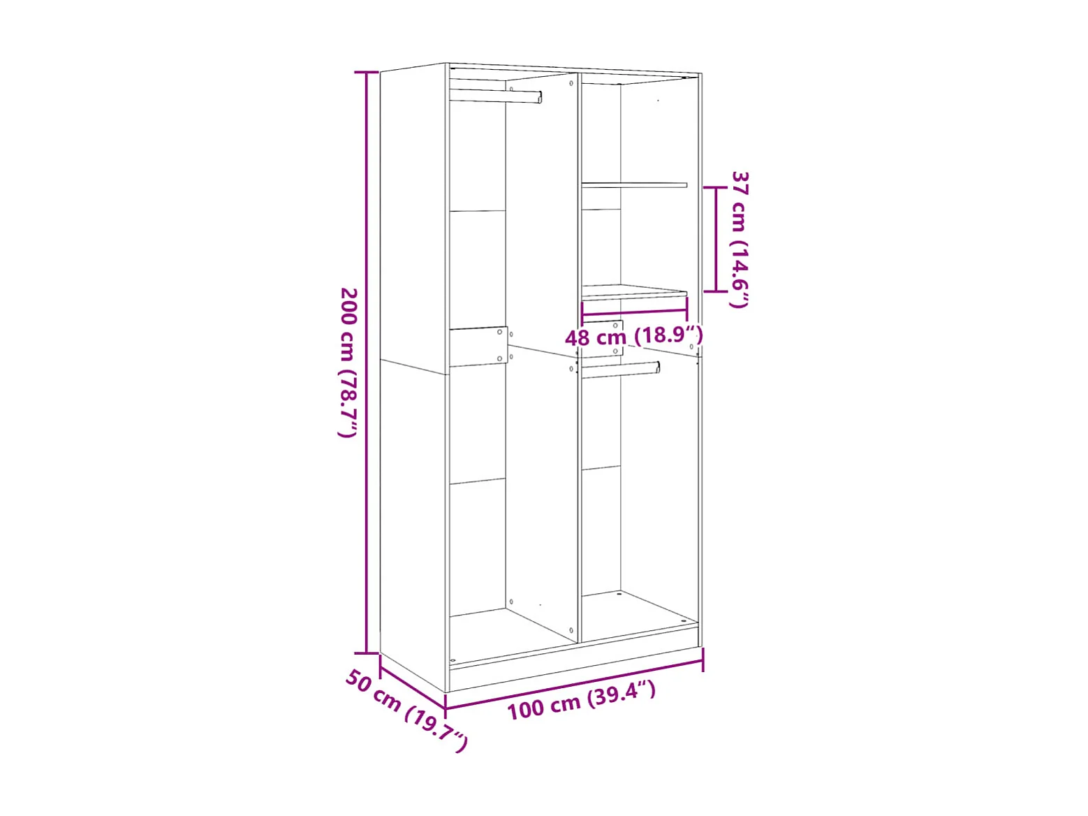 Roupeiro 100x50x200 cm derivados de madeira carvalho artisiano