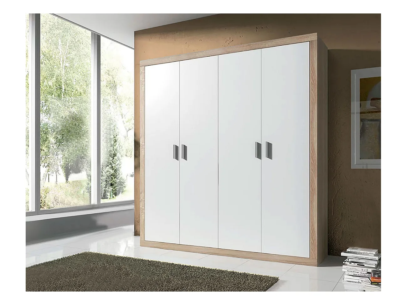 Roupeiro 4 Portas Kiara, Carvalho e Grafito 210x196x48cm