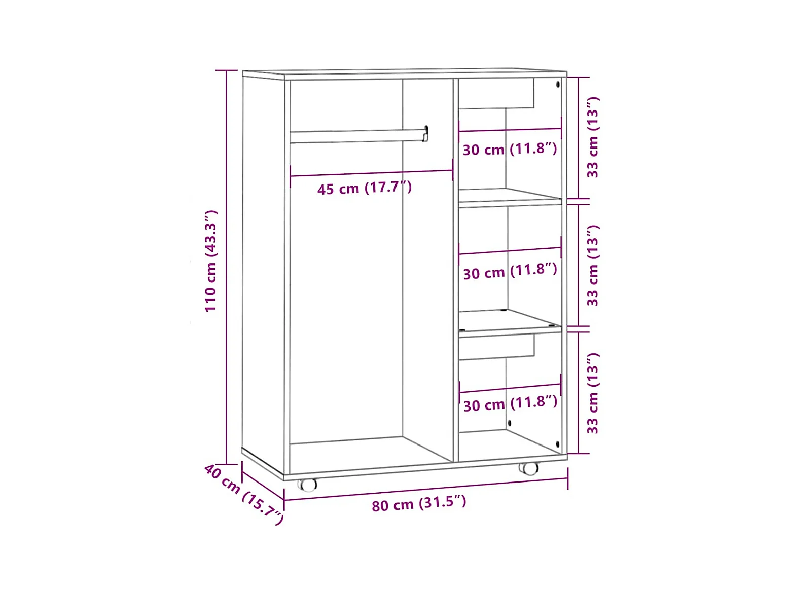 Roupeiro 80x40x110 cm derivados de madeira carvalho fumado