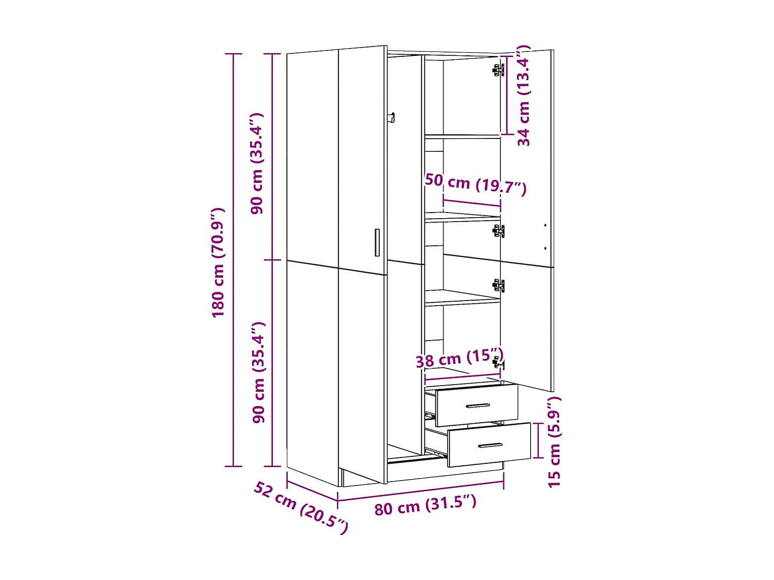 Roupeiro 80x52x180 cm derivados de madeira branco