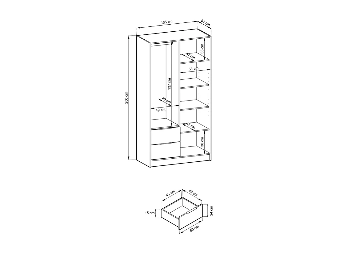Roupeiro AMBIHOME ELLY 03 - Cinzento, C105xP51xA200cm