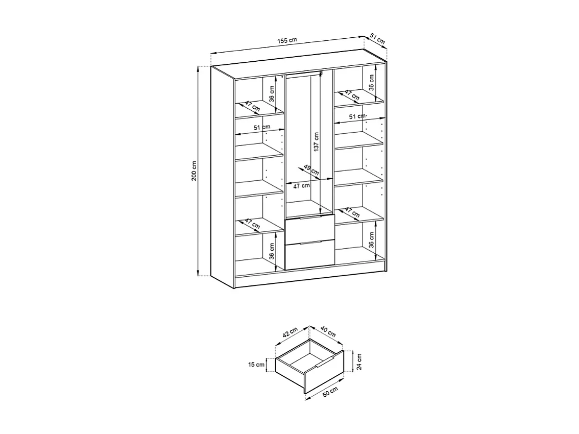 Roupeiro AMBIHOME ELLY 05 - Grafite, C155xP51xA200cm