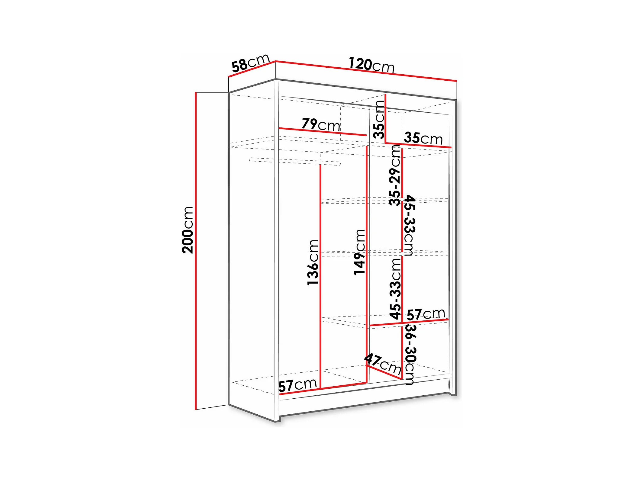Roupeiro Closico 140, Número de prateleiras: 5, 20x15x6cm