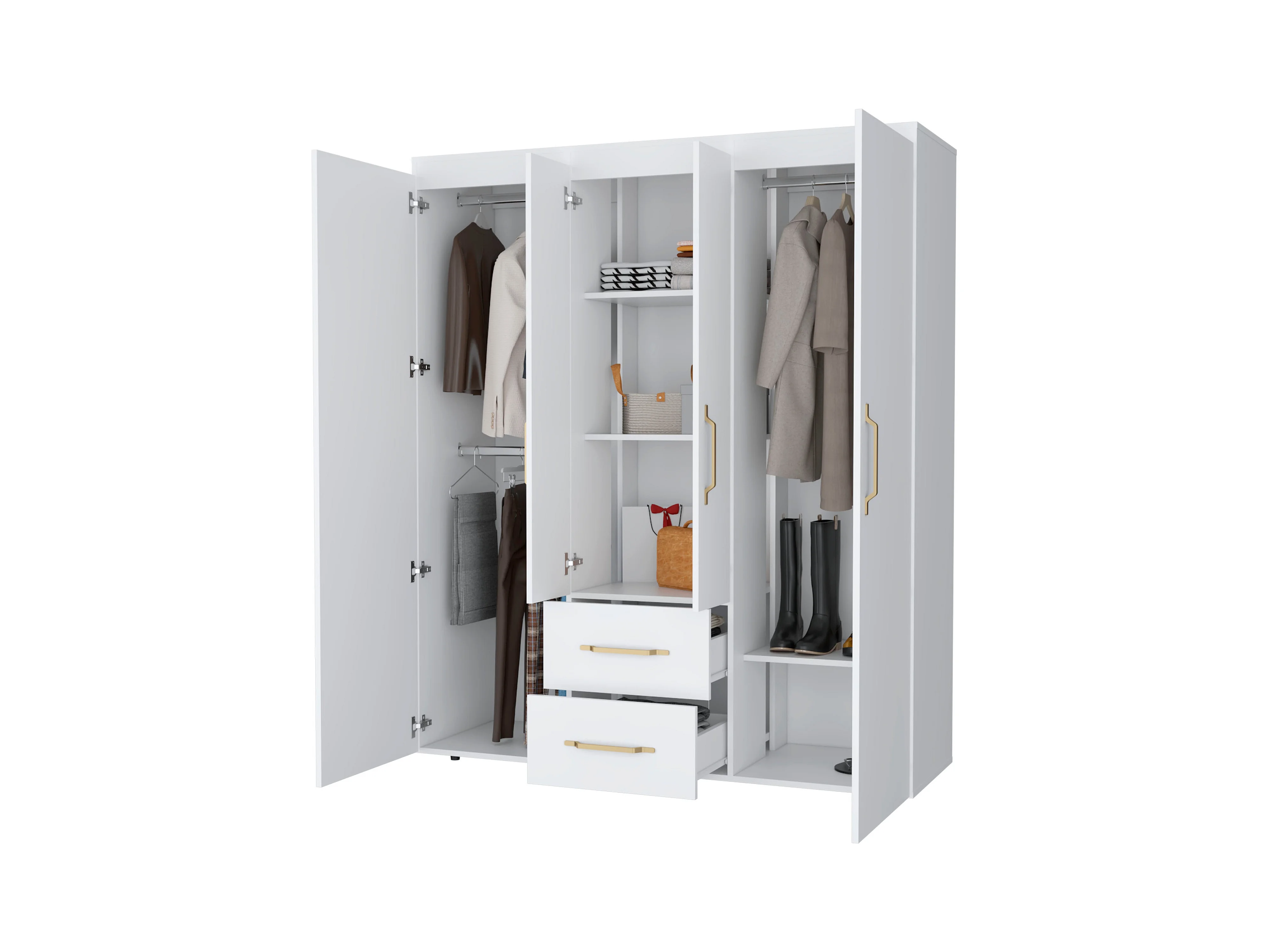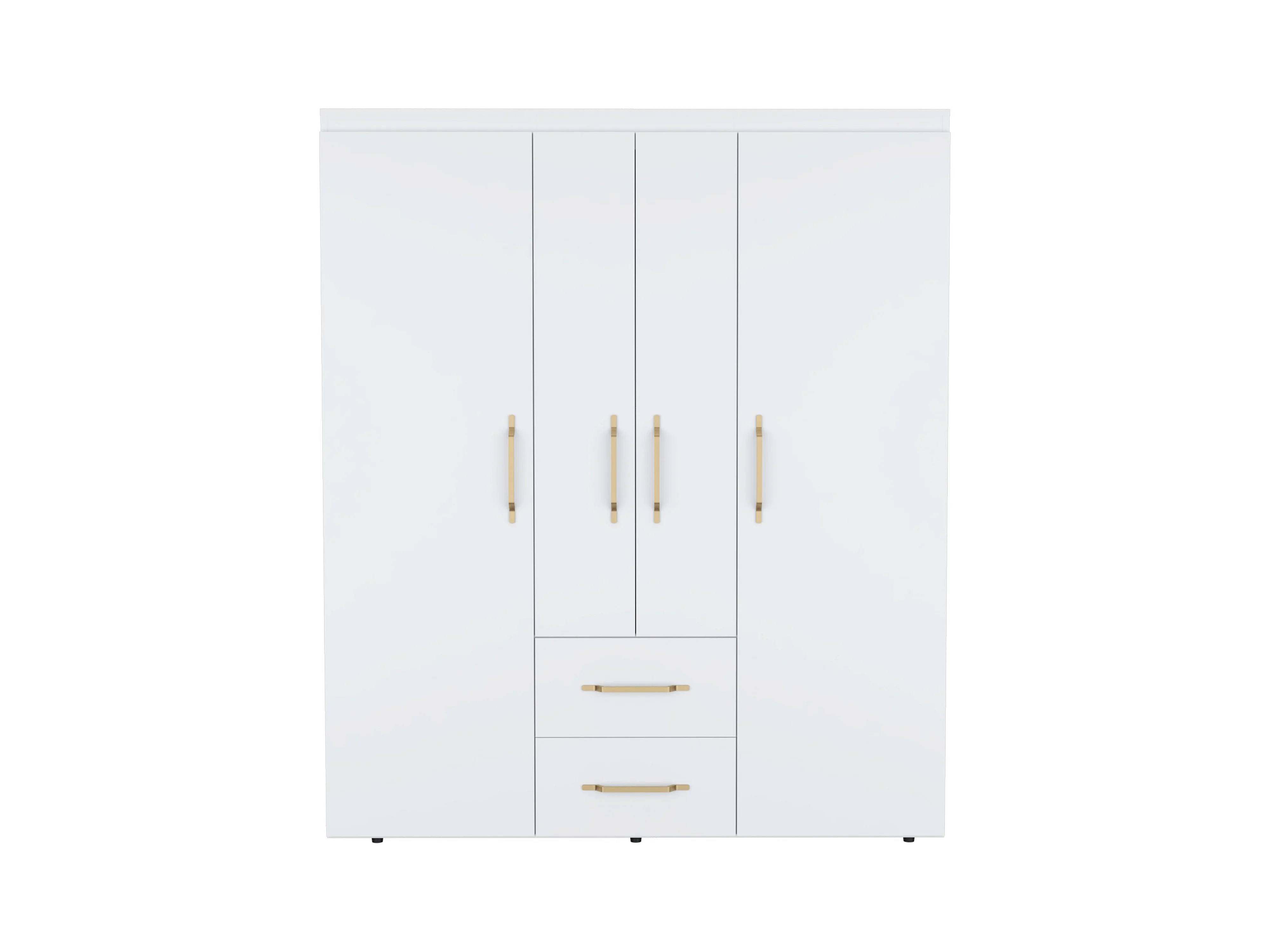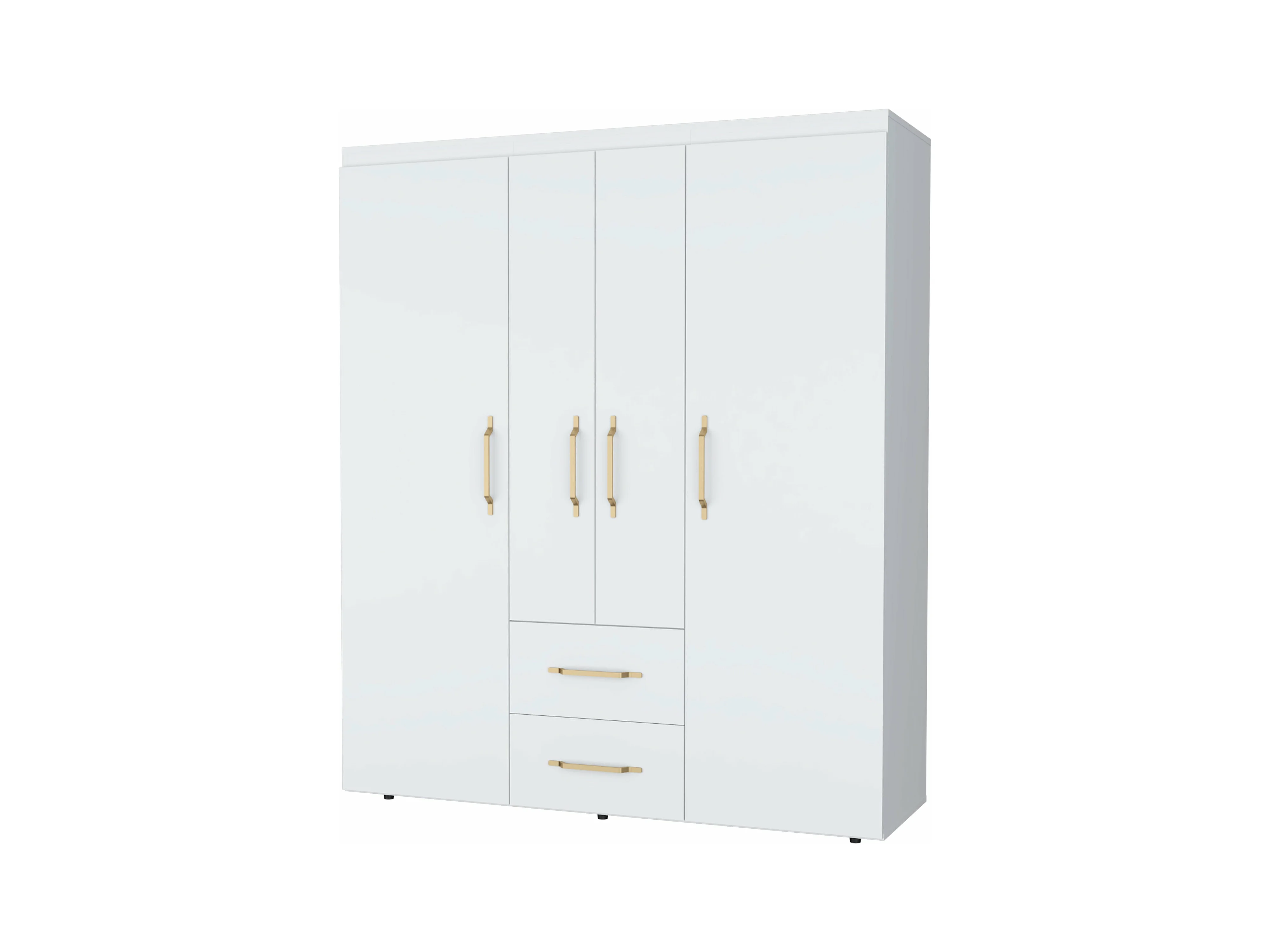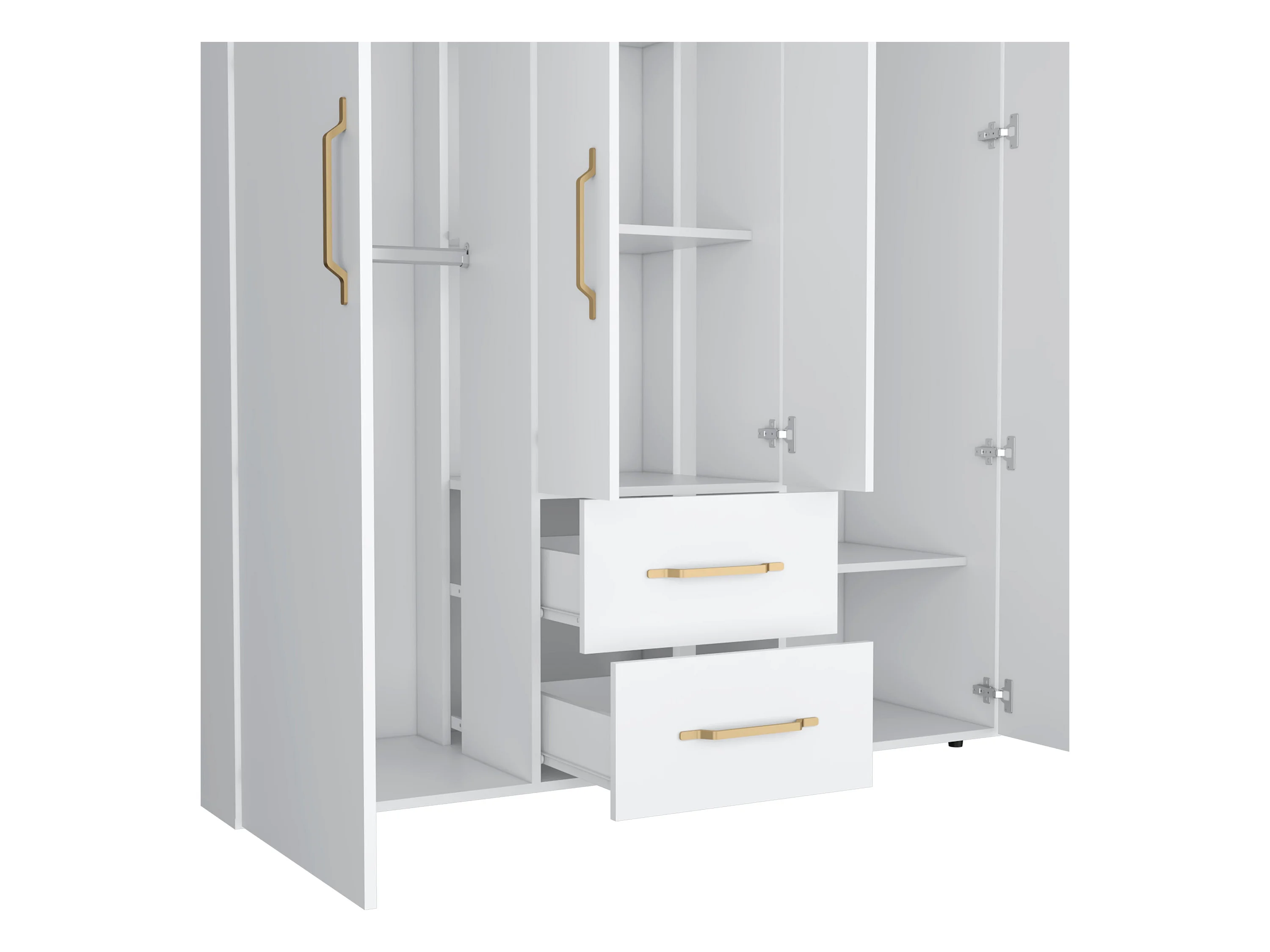 Roupeiro Bariloche em melamina com 4 portas, 4 prateleiras, 3 suportes para roupa e 2 gavetas , branco, 177.9 cm X 150.3 cm X 50.4 cm