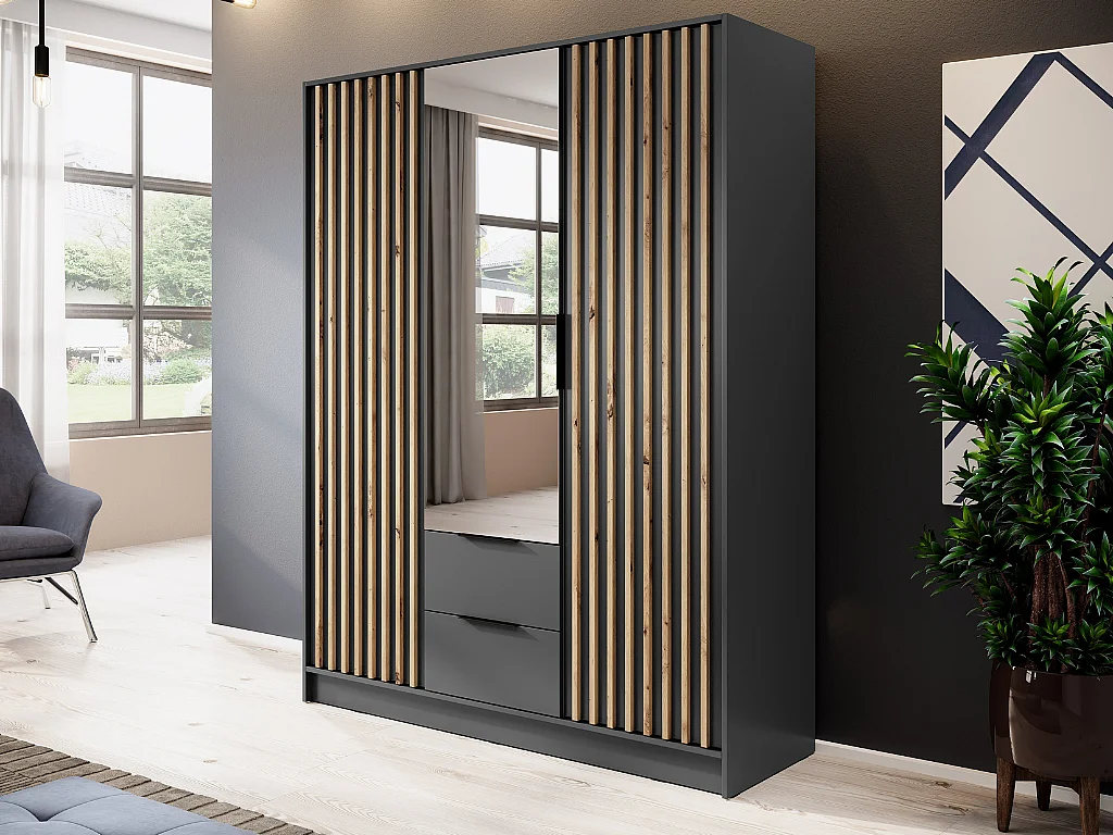 Roupeiro c/espelho AMBIHOME ELLY 06 - Grafite, C155xP51xA200cm