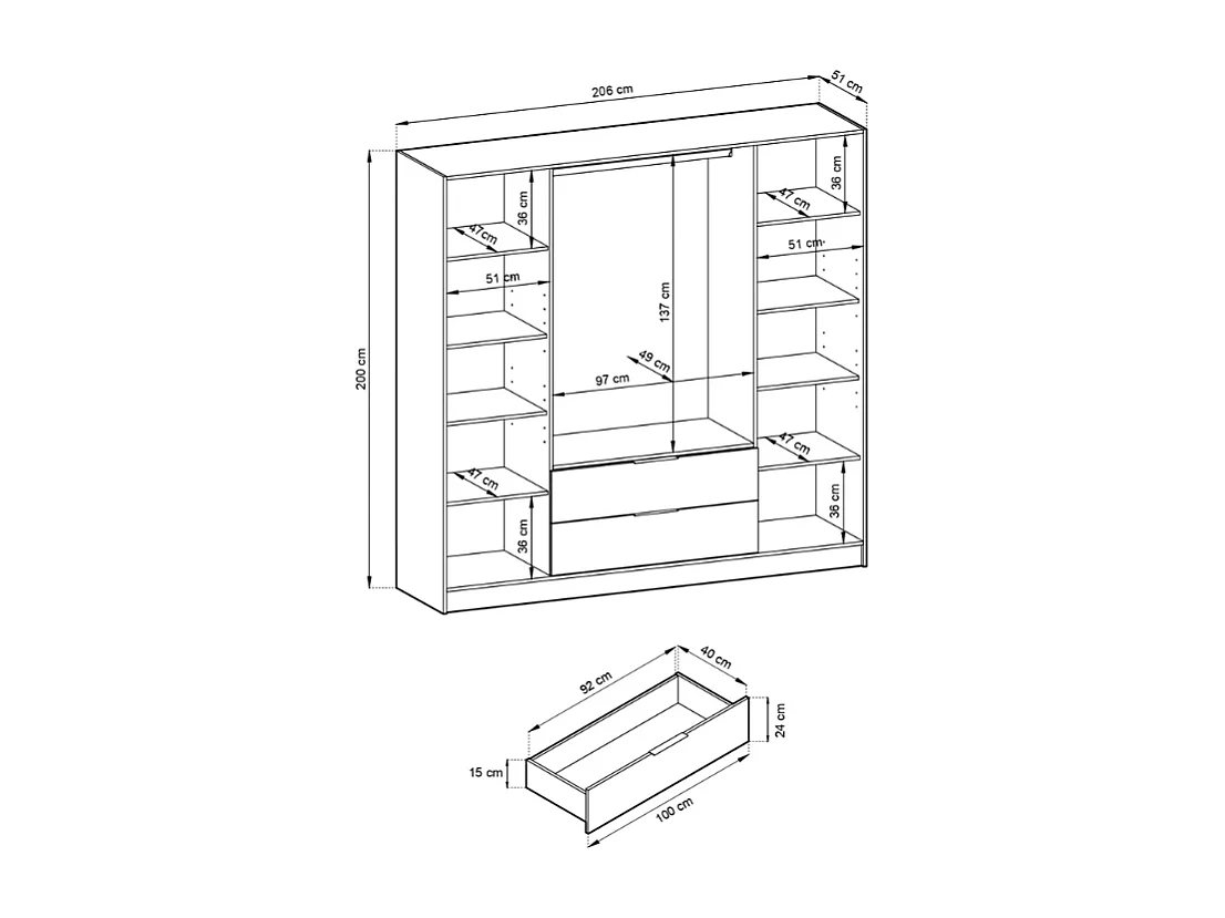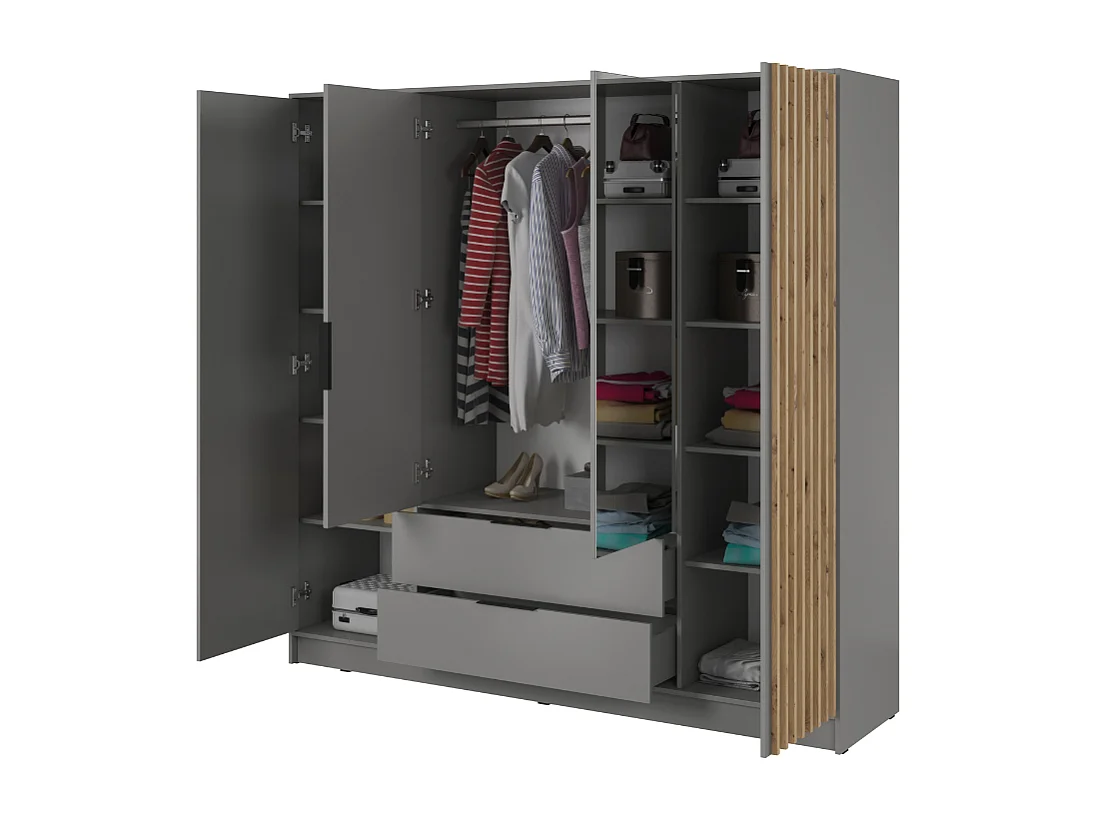 Roupeiro c/espelho AMBIHOME ELLY 08 - Cinzento, C206xP51xA200cm