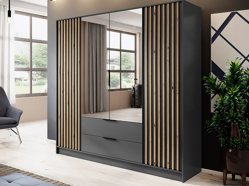 Roupeiro c/espelho AMBIHOME ELLY 08 - Grafite, C206xP51xA200cm