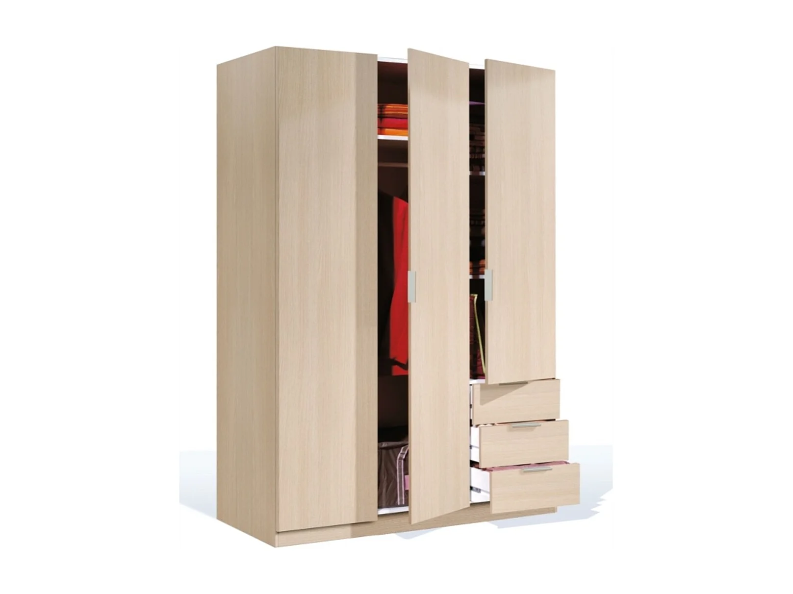 Roupeiro de baixo custo 3 portas 3 gavetas Roble