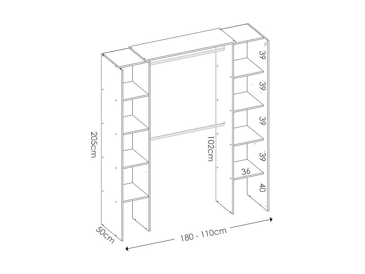 Este roupeiro aberto é extensível de 110 a 180 cm graças à sua barra de pendurado regulável.