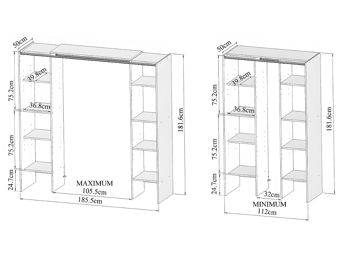 Roupeiro aberto extensível EMERIC - Comp.112/185 cm - Branco e antracite
